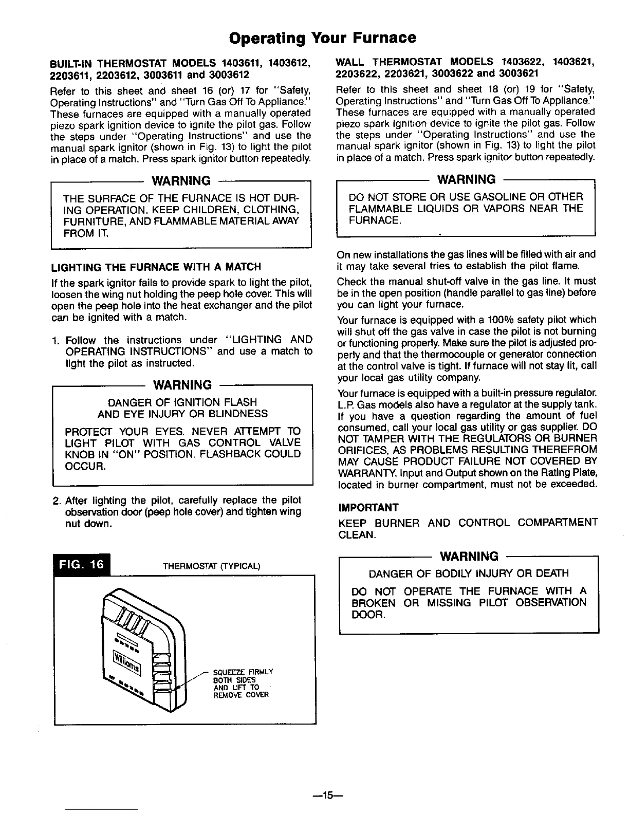 manual spark ignitor (shown in Fig. 13) to light the pilot