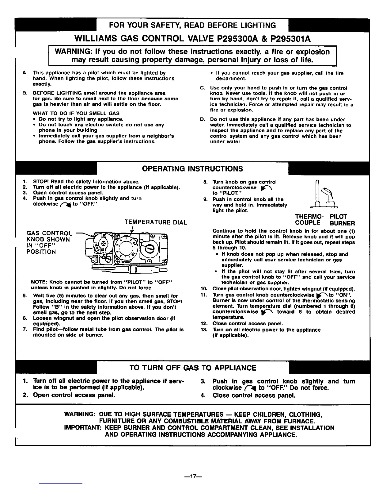 NOTE: Knob cannot be turned from "PILOT" to "OFF'"