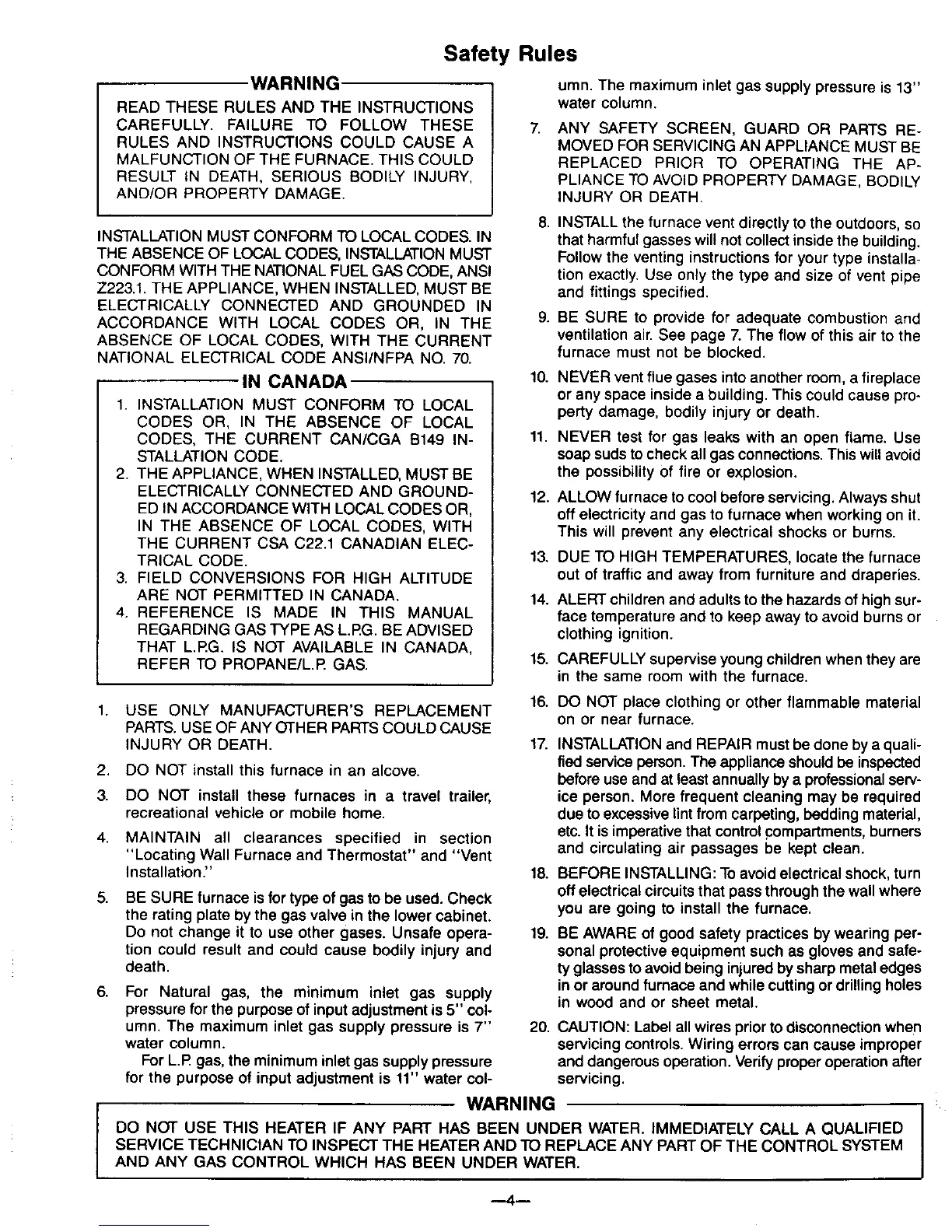 1. INSTALLATION MUST CONFORM TO LOCAL
