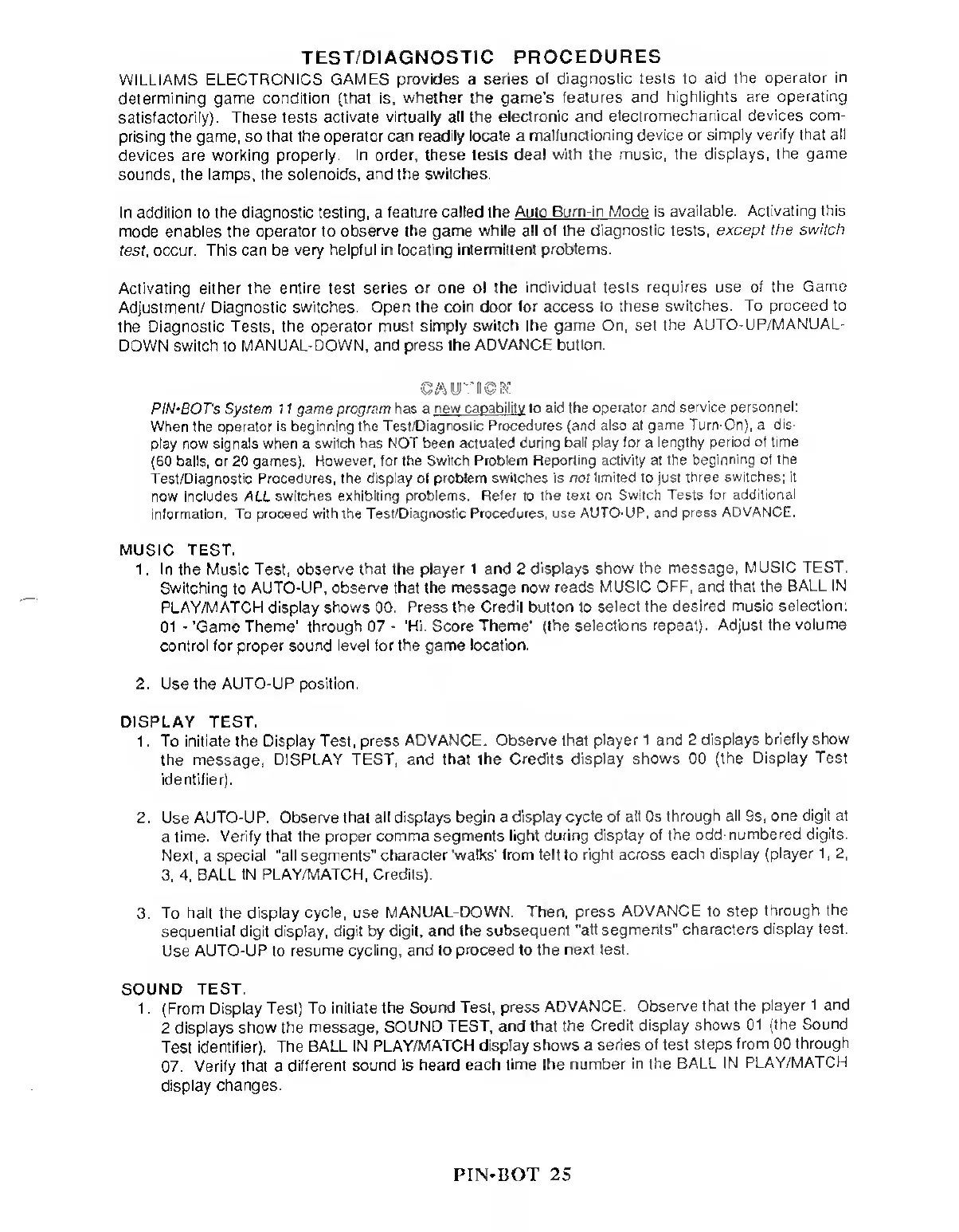 Test/Diagnostic Procedures, the display of
