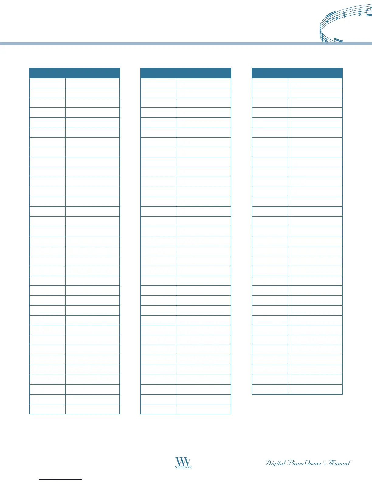 Williams Serenade - STYLE LIST; Rhythm Style Names