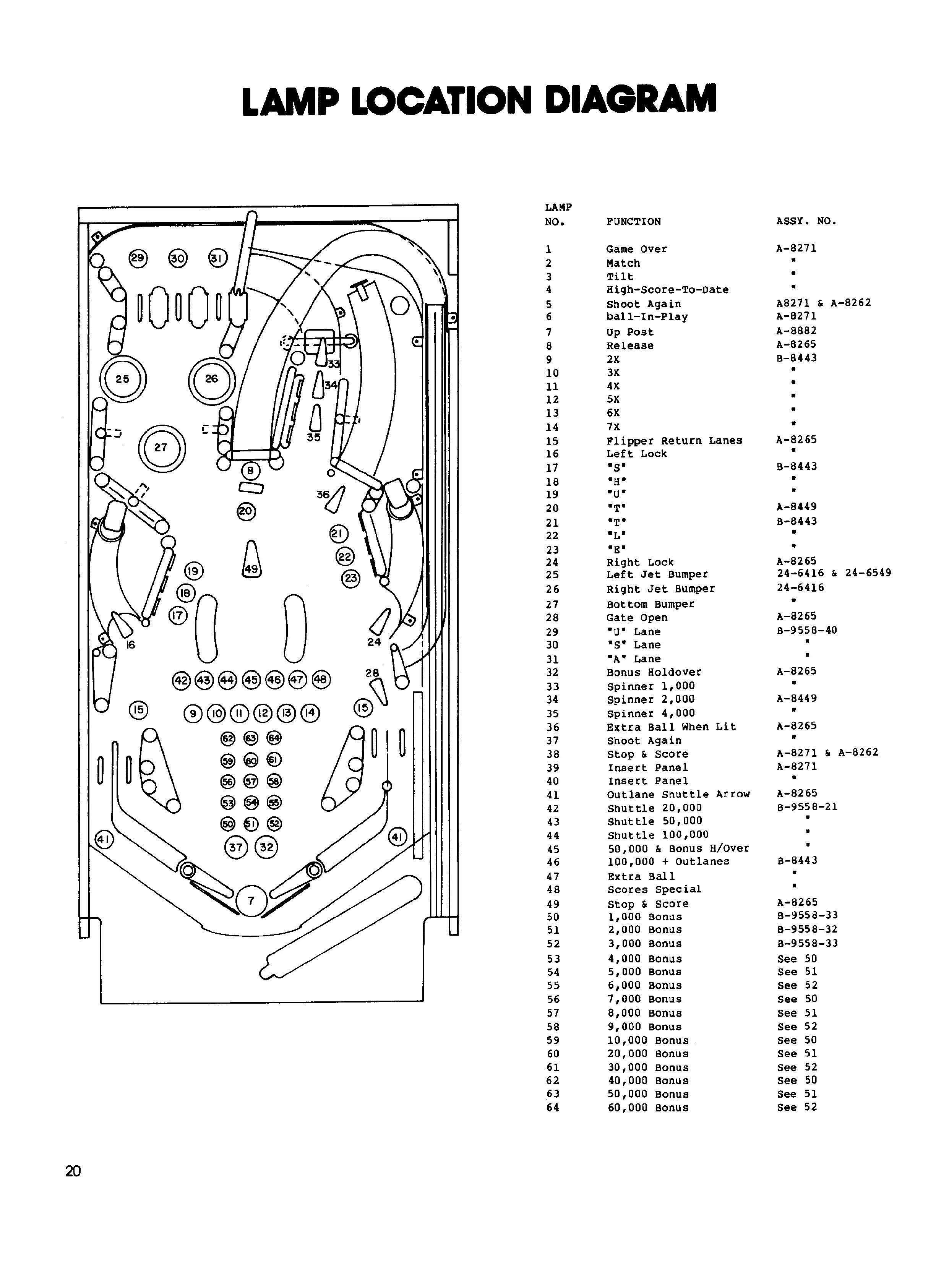 Williams SPACE SHUTTLE - Lamp Location Diagram