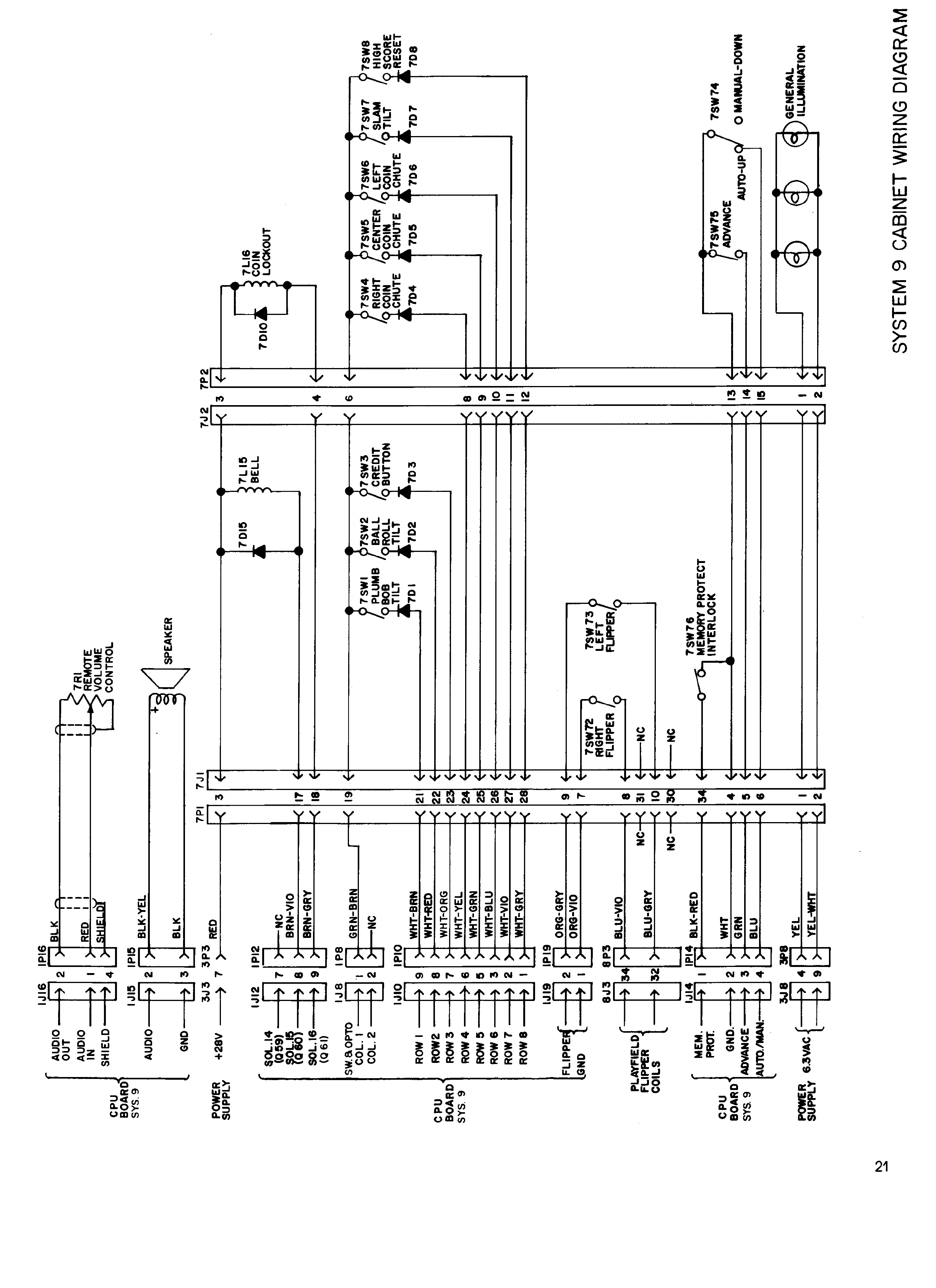 Williams SPACE SHUTTLE - System 9 Cabinet Wiring Diagram