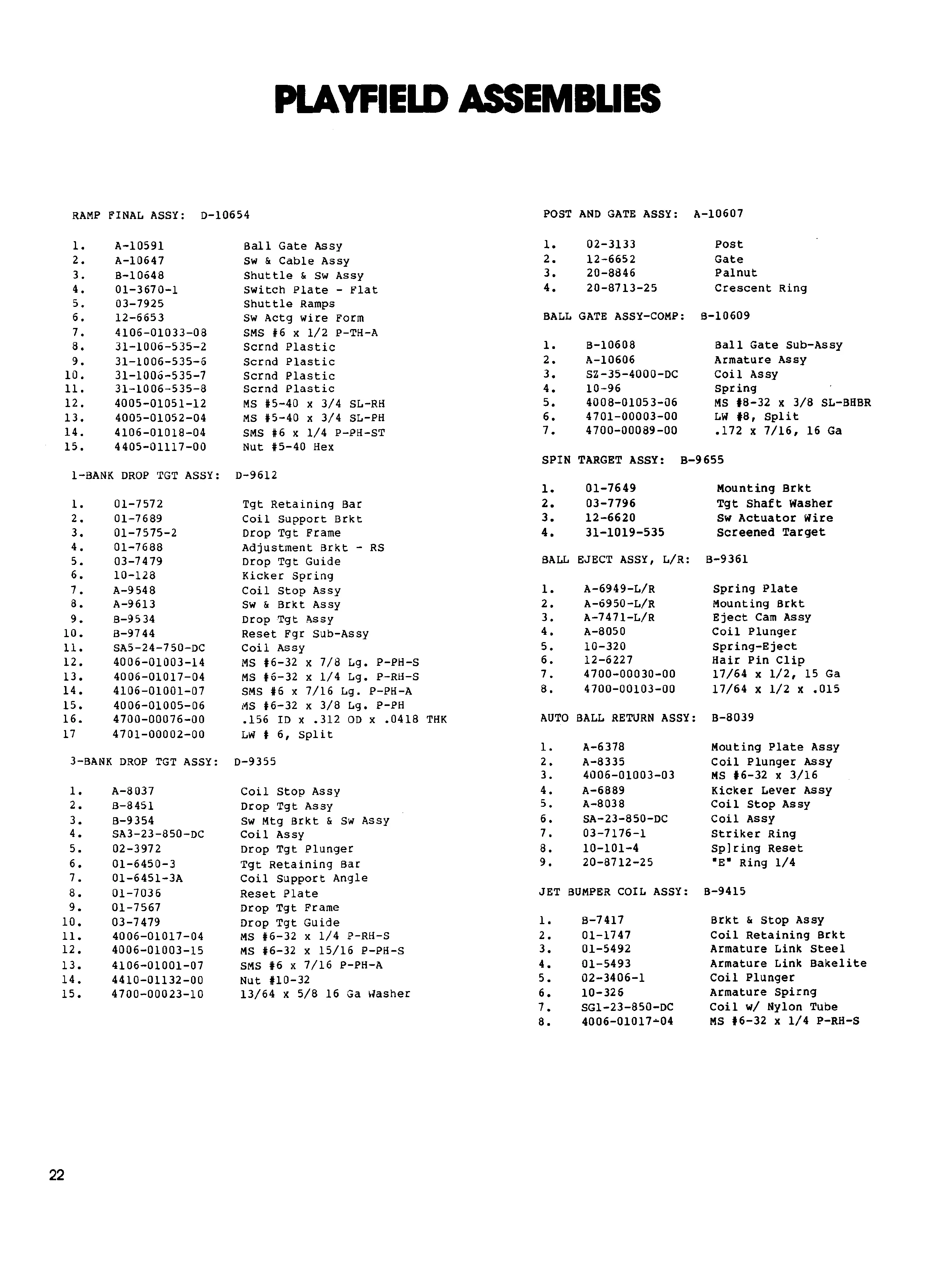 Williams SPACE SHUTTLE - Playfield Assemblies