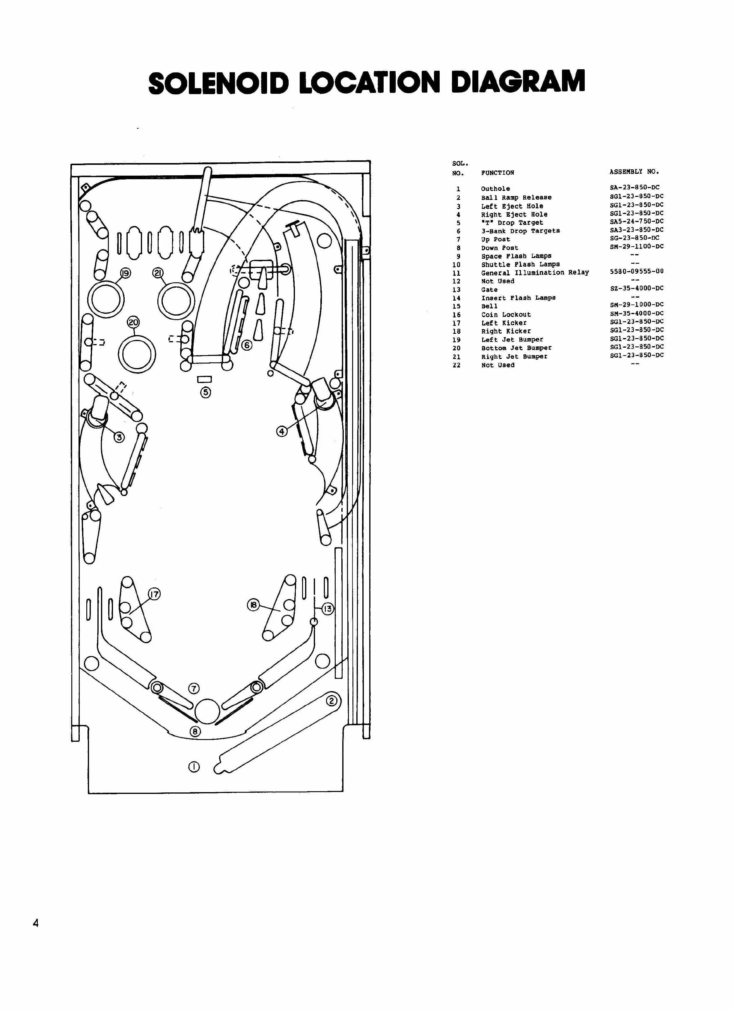 Williams SPACE SHUTTLE - Solenoid Location Diagram