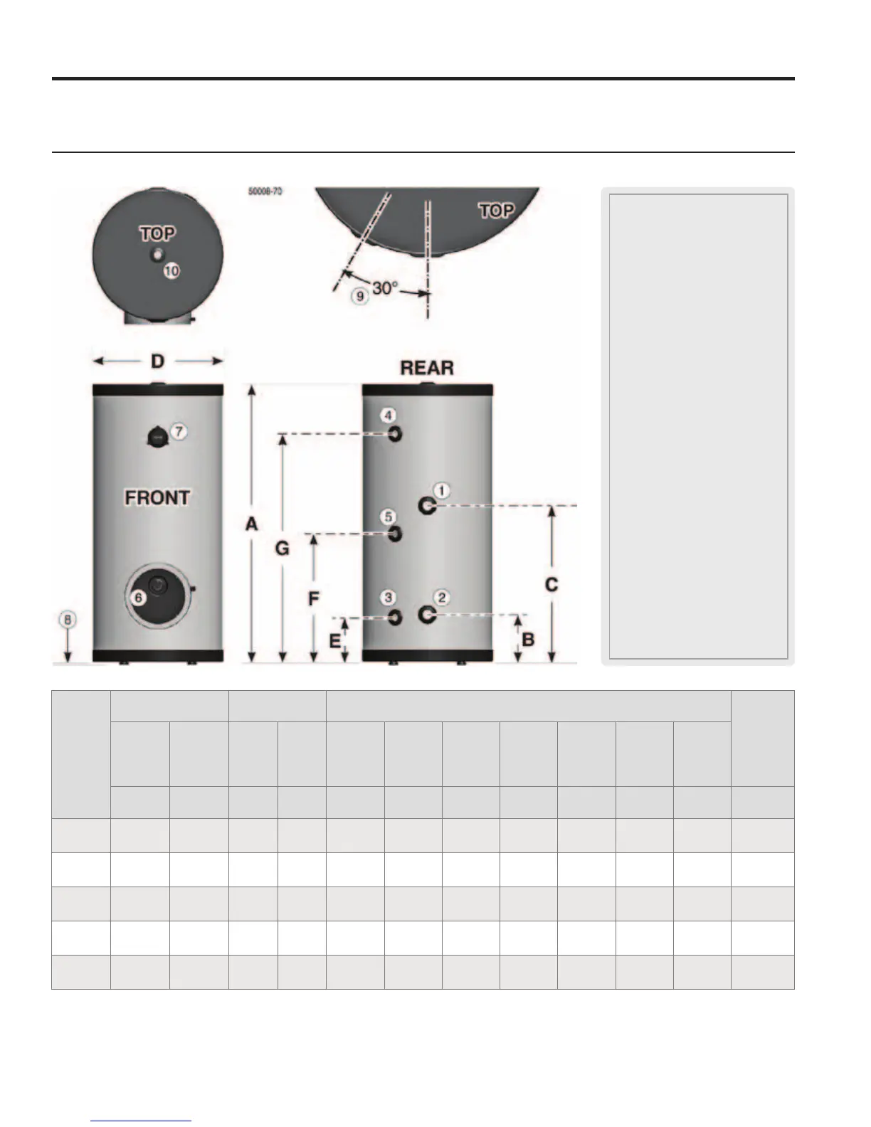 Boiler water inlet (see table