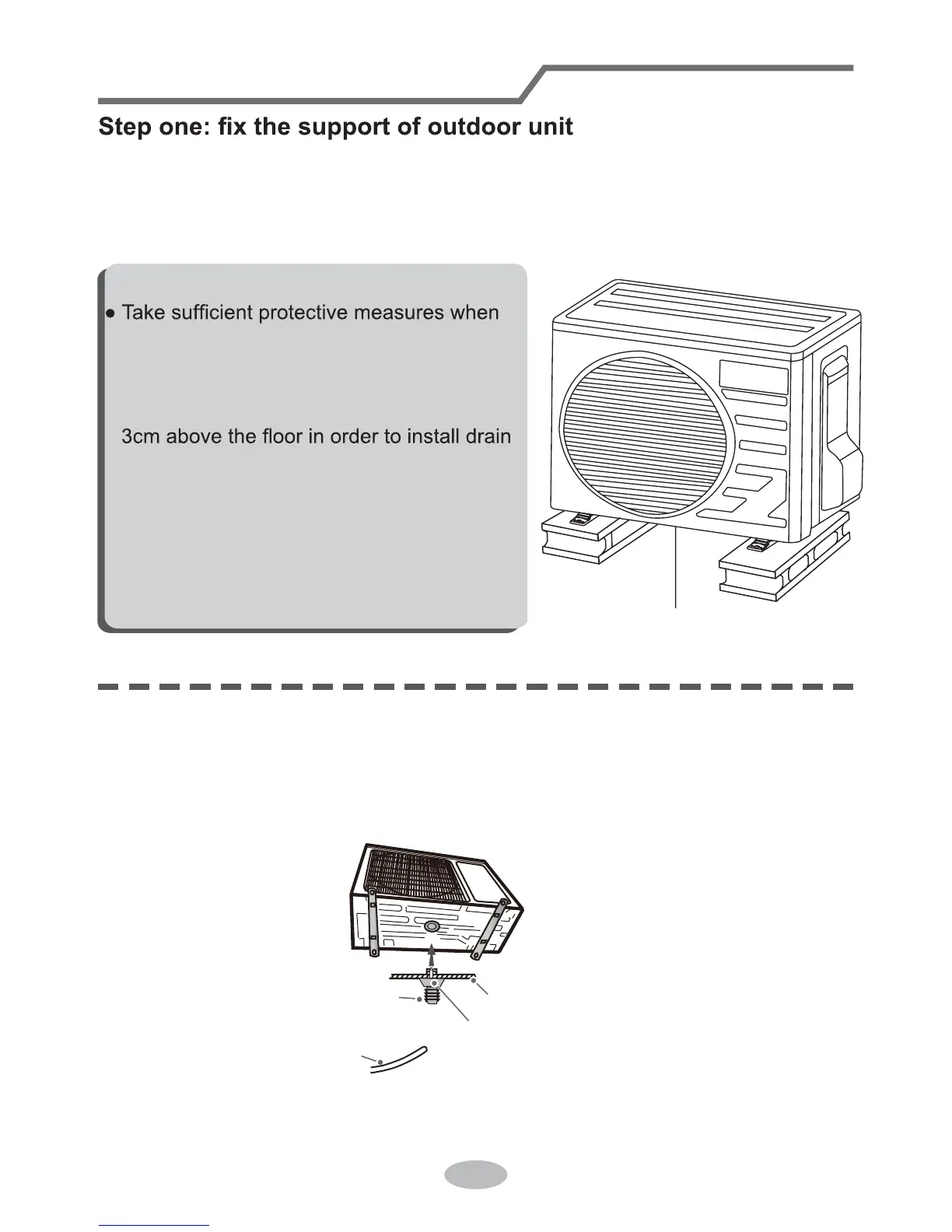 2. Fix the support of outdoor unit on the selected location with expansion screws.