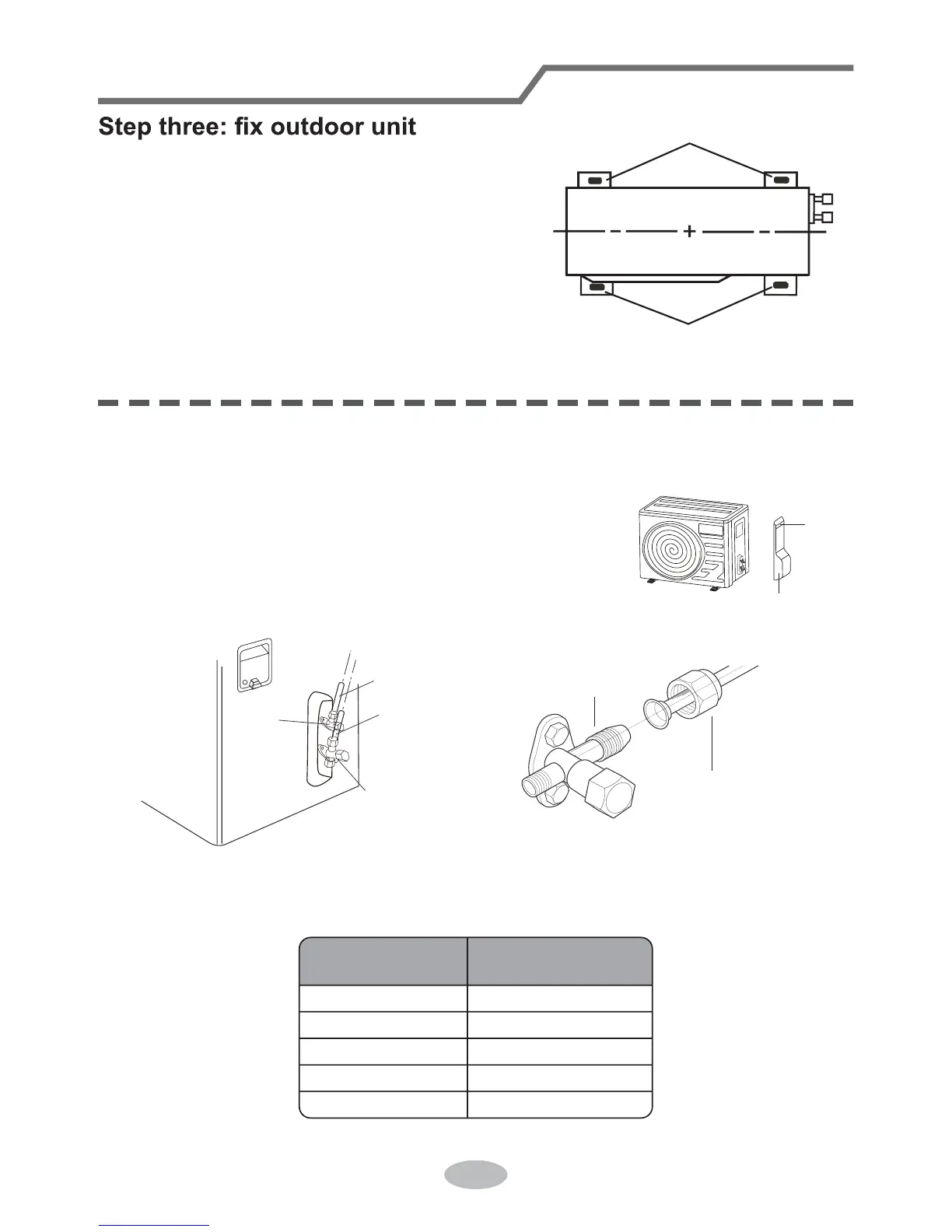 2. Fix the foot holes of outdoor unit with bolts.