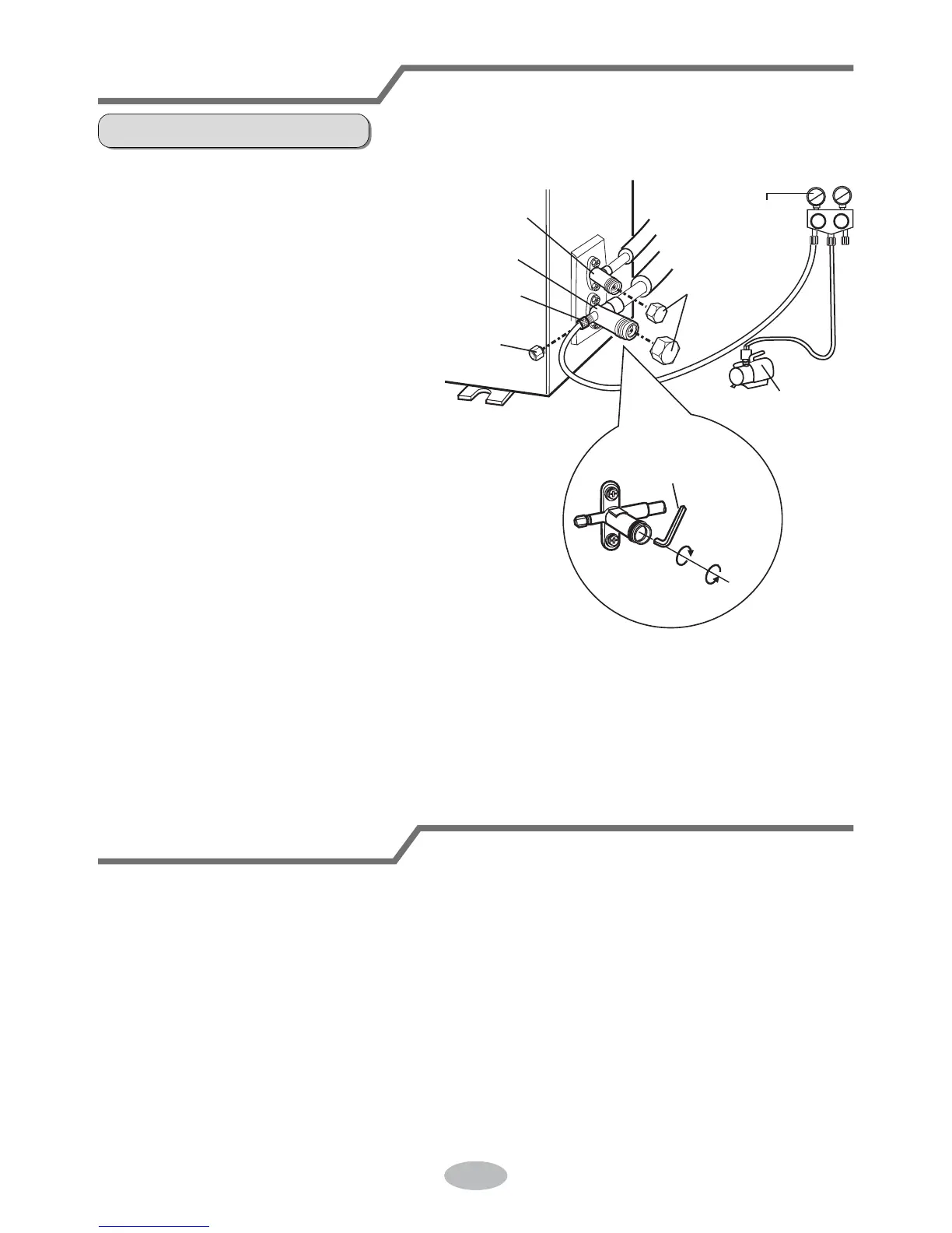 6. Tighten the screw caps of valves and refrigerant charging vent.