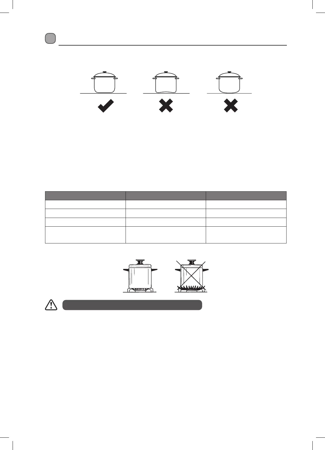 • Always make sure saucepans are stable. Using very heavy saucepans may bend the trivet/pan support or