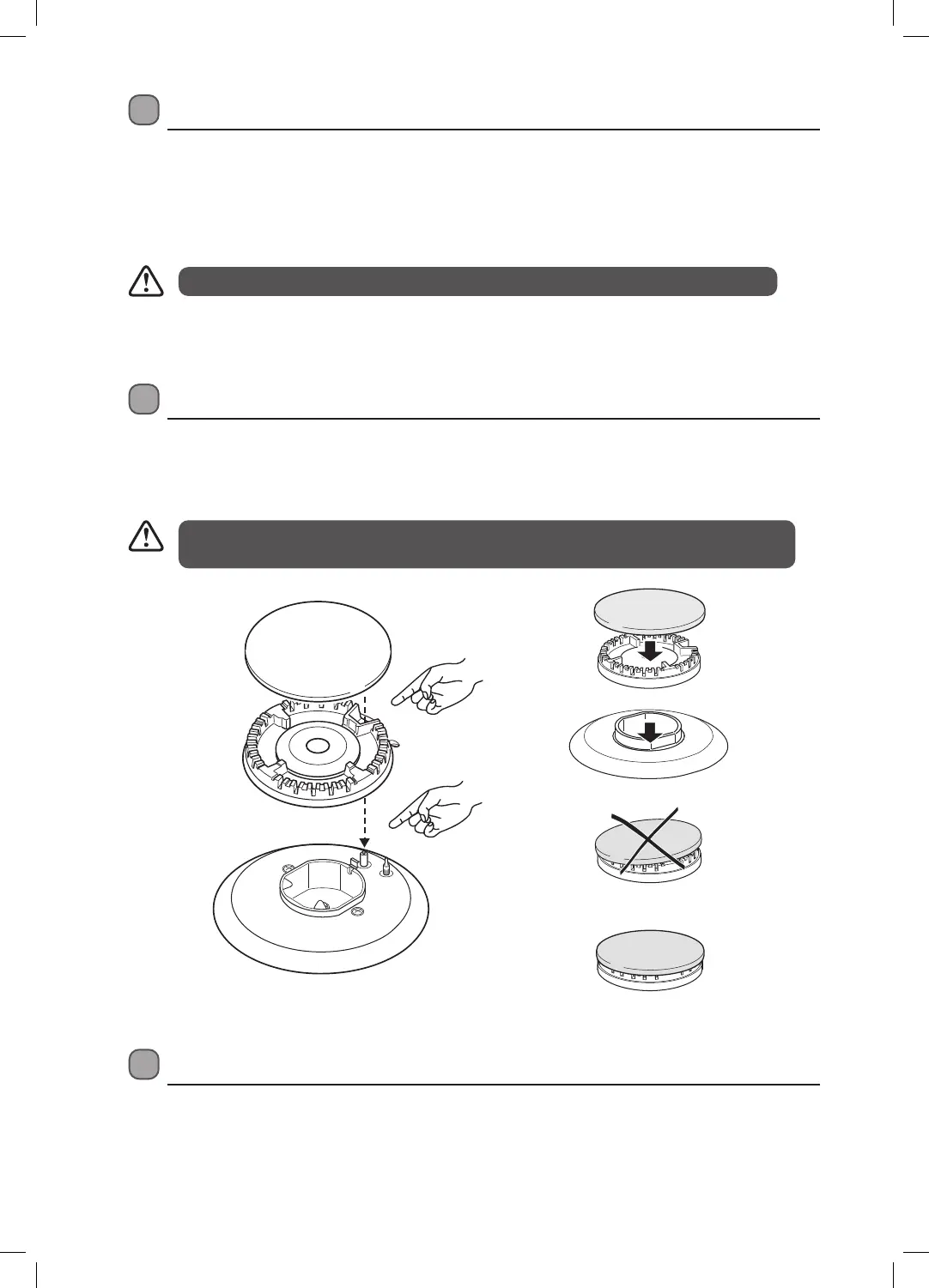 It is very important to check that the burner rings and burner caps have been correctly positioned.