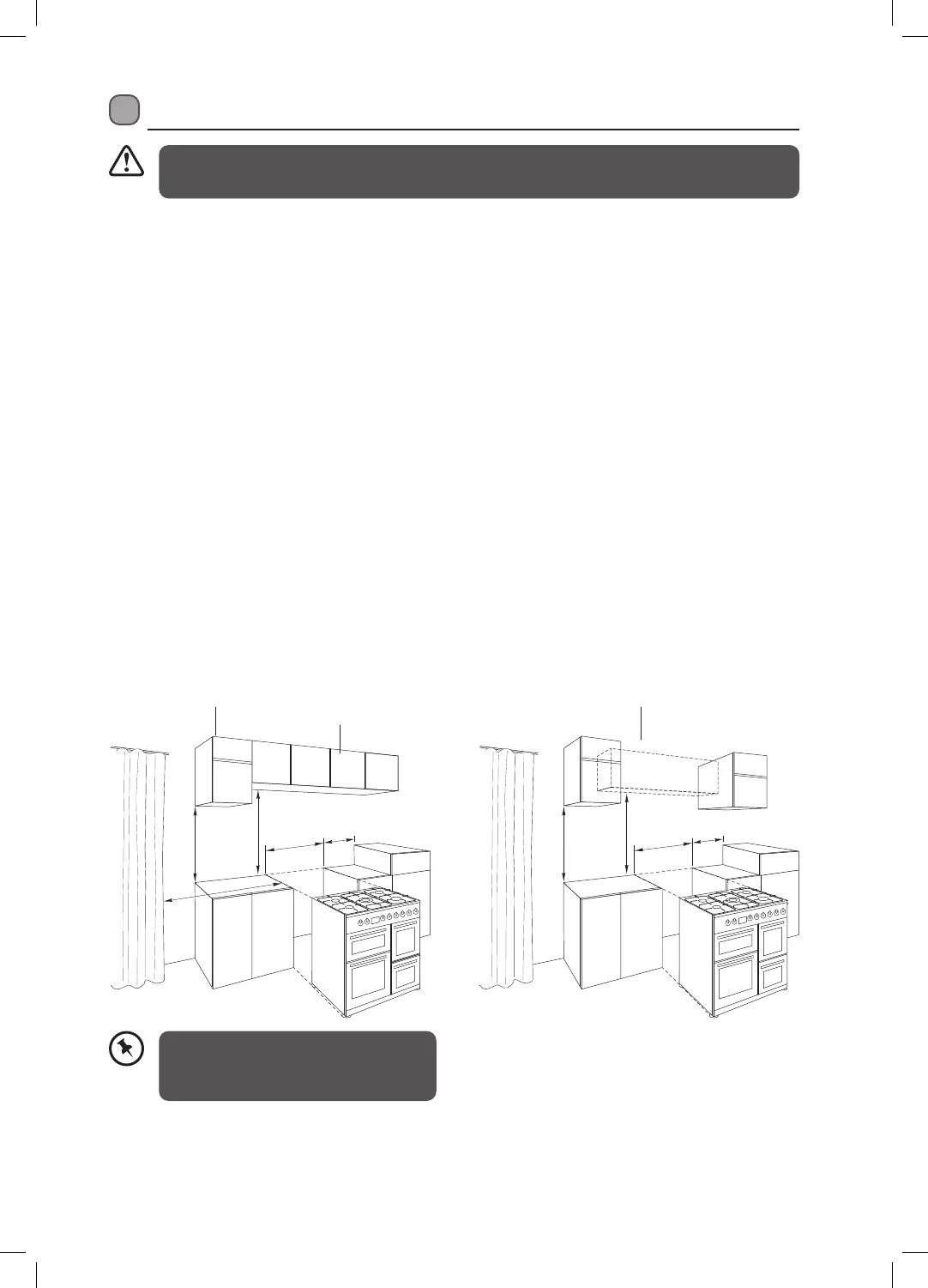 • It is essential that the cooker is positioned as stated or freestanding ensuring the distances to flammable