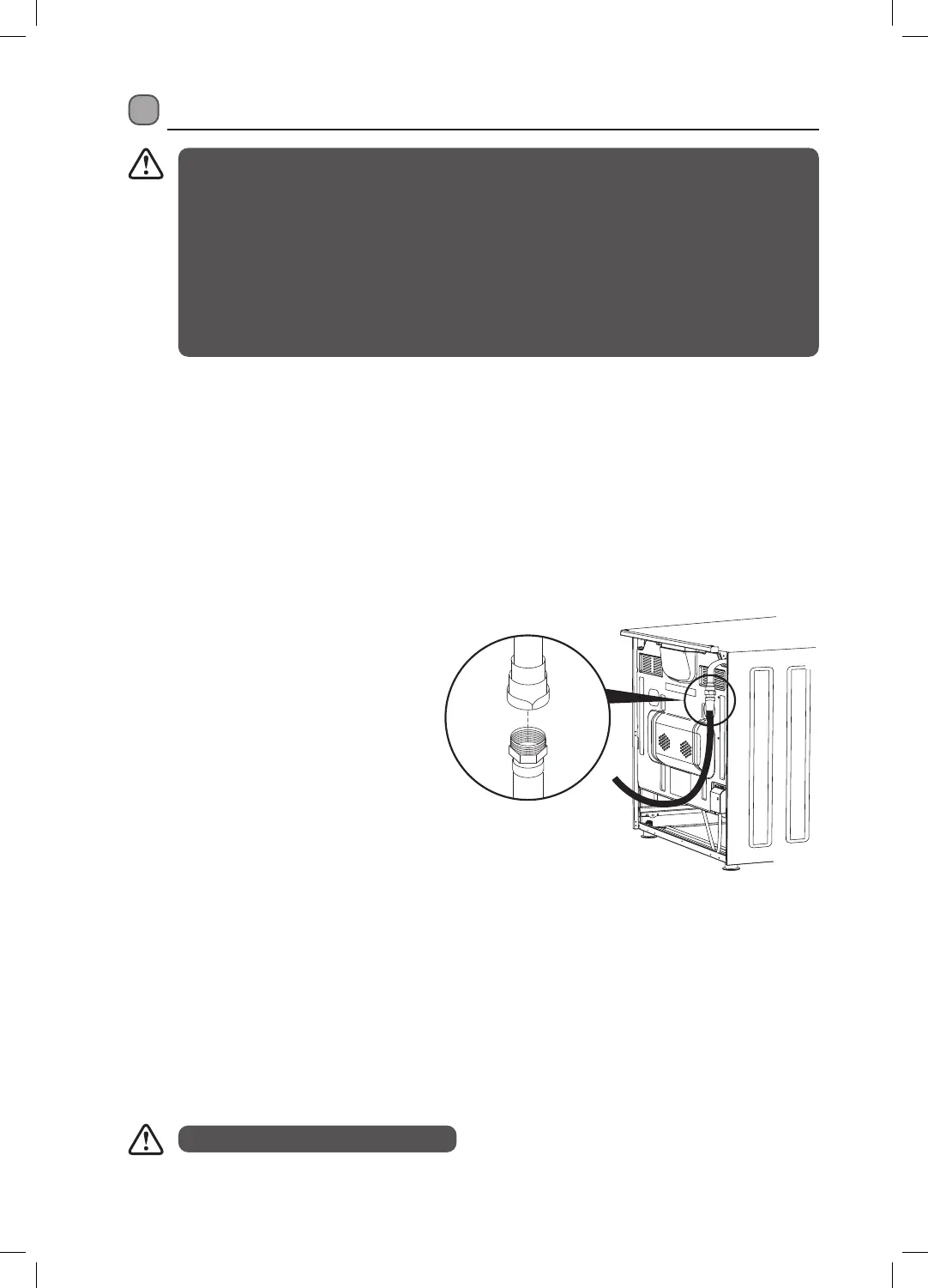 1. Connect the gas supply to the gas inlet at the rear of the cooker. The gas hose must hang in a “U” shape