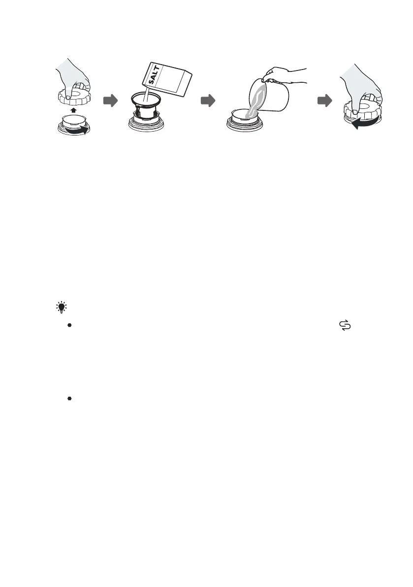 3. Fill the salt container to its maximum limit with water, It is normal for a small