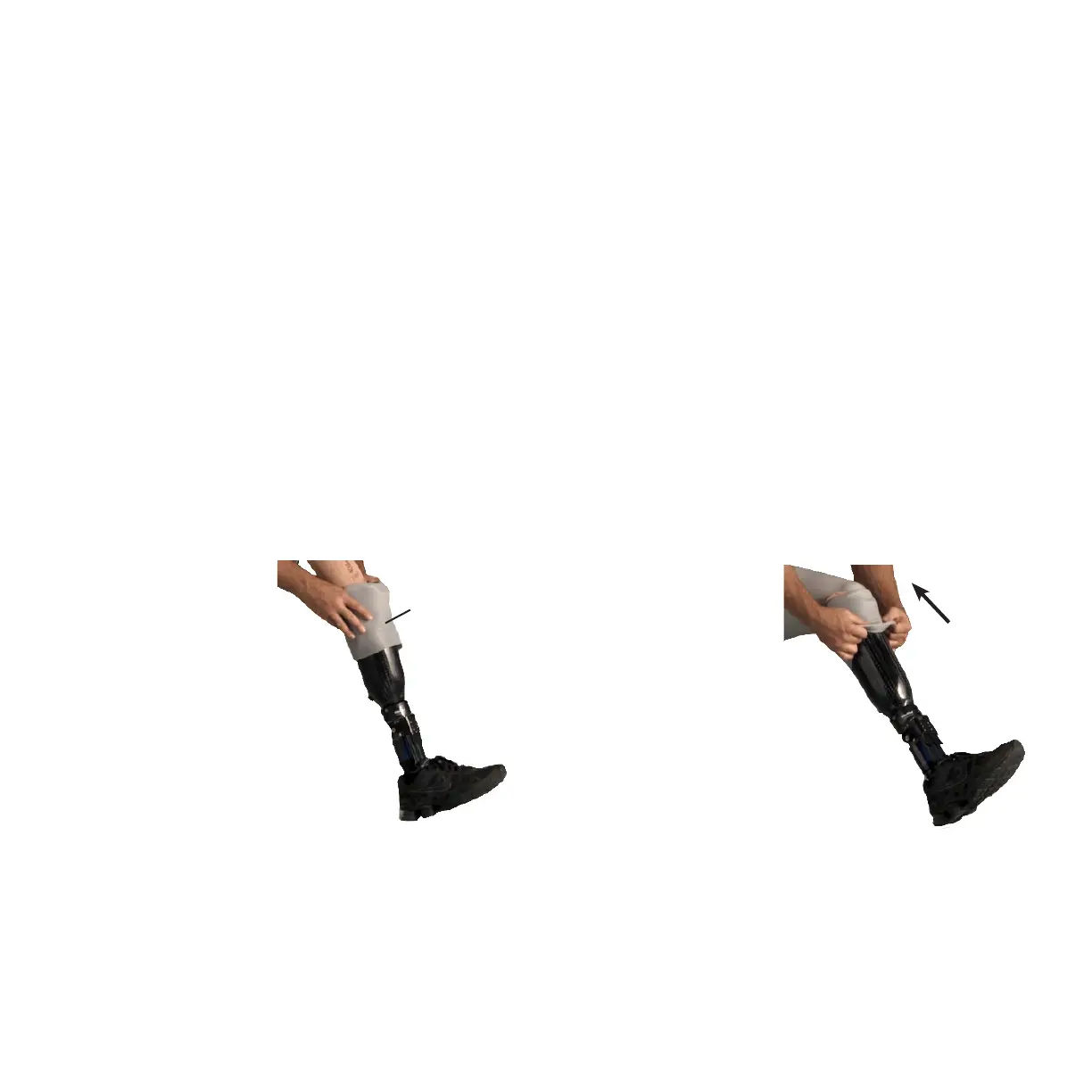 4. Roll the sock up onto the limb so that the silicone side is against the liner. Make sure that there are no