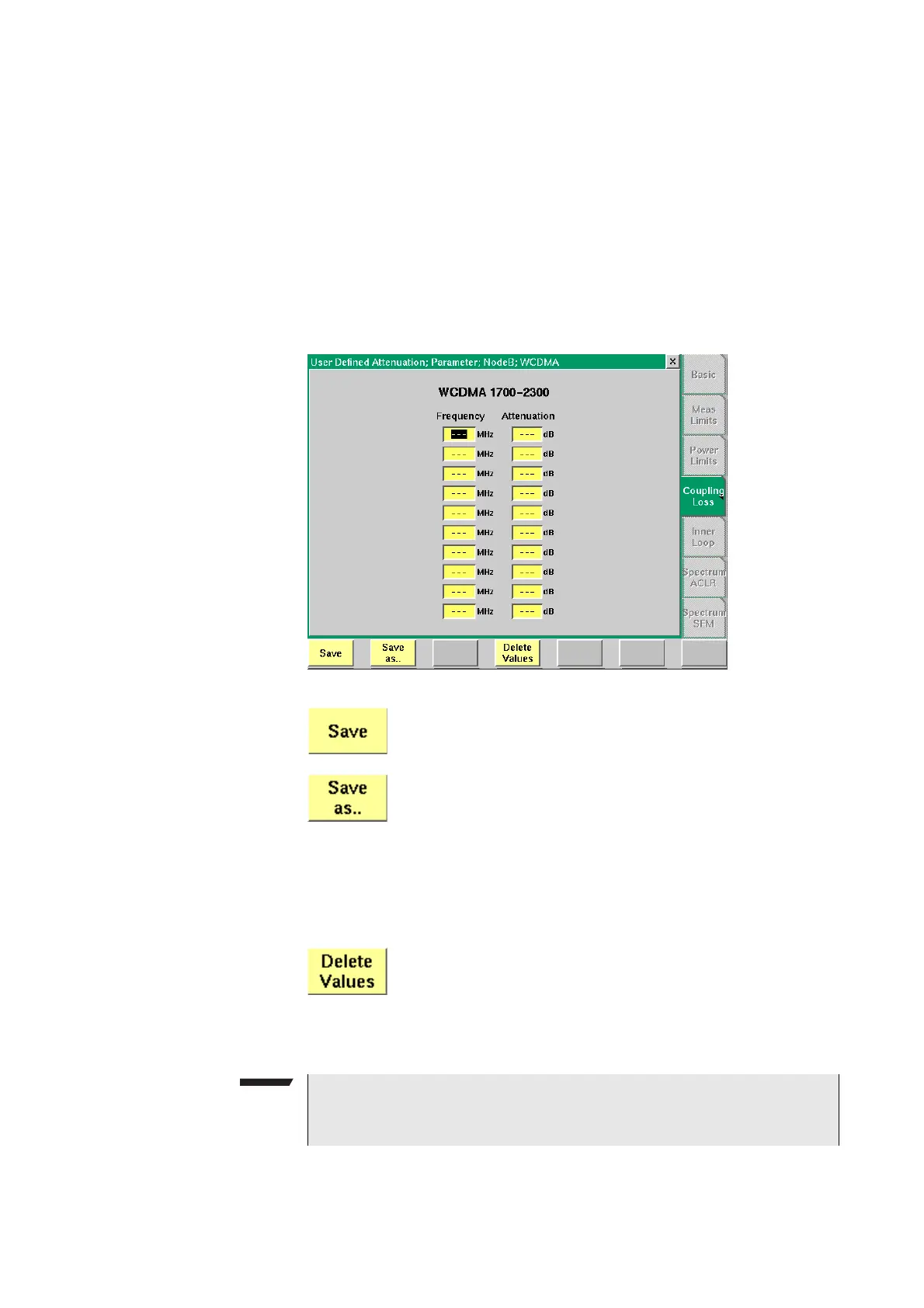 This procedure allows you to enter coupling loss values and frequencies in a