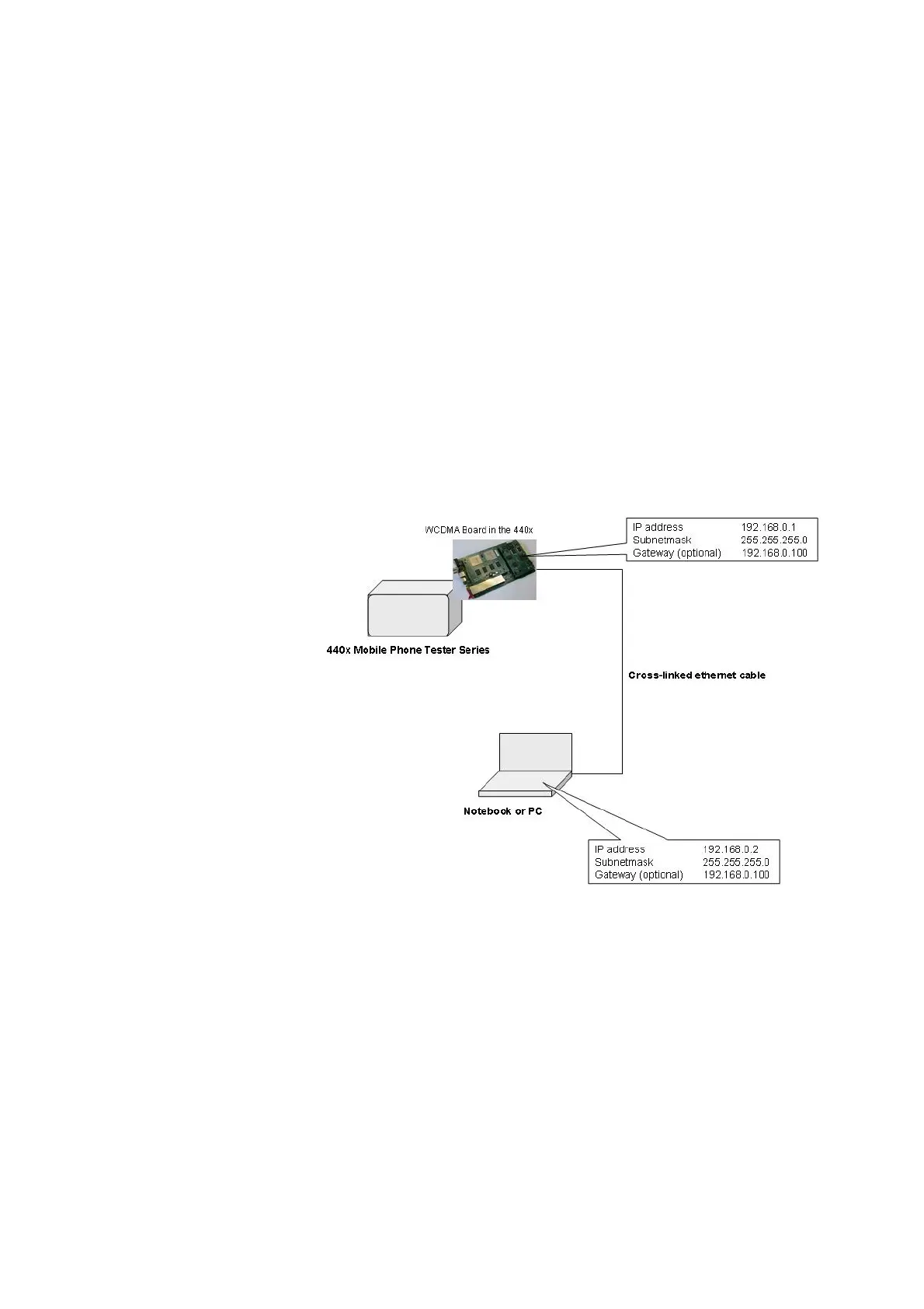 4 Insert the address for the WCDMA Main Board (e.g. 192.168.0.1) the subnet