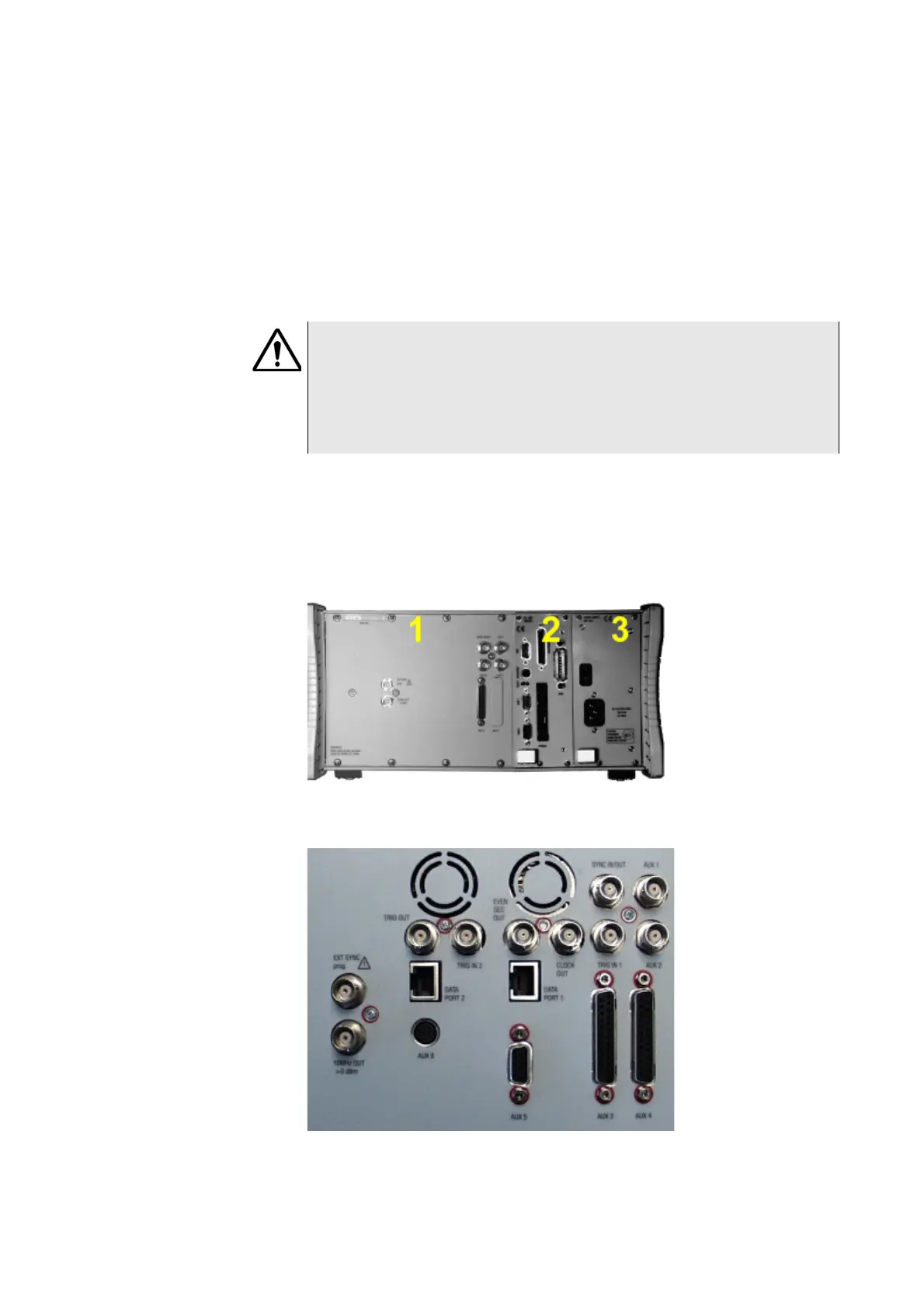 the RF section (1), the PC unit (2) and the Power supply (3). Each section provides