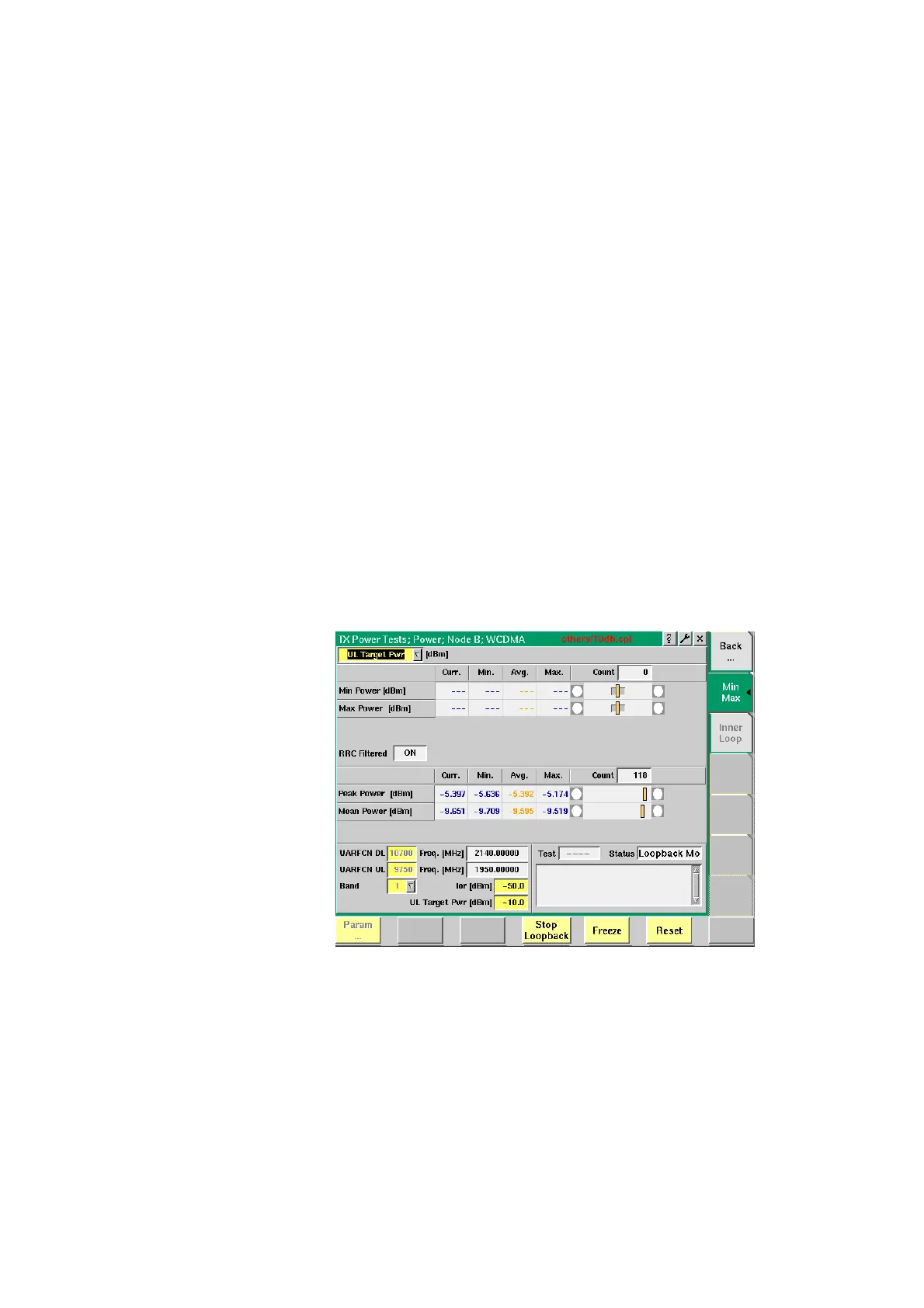 Min./max. power test After you have selected the [Power...] marker tab the Min Max test menu will be