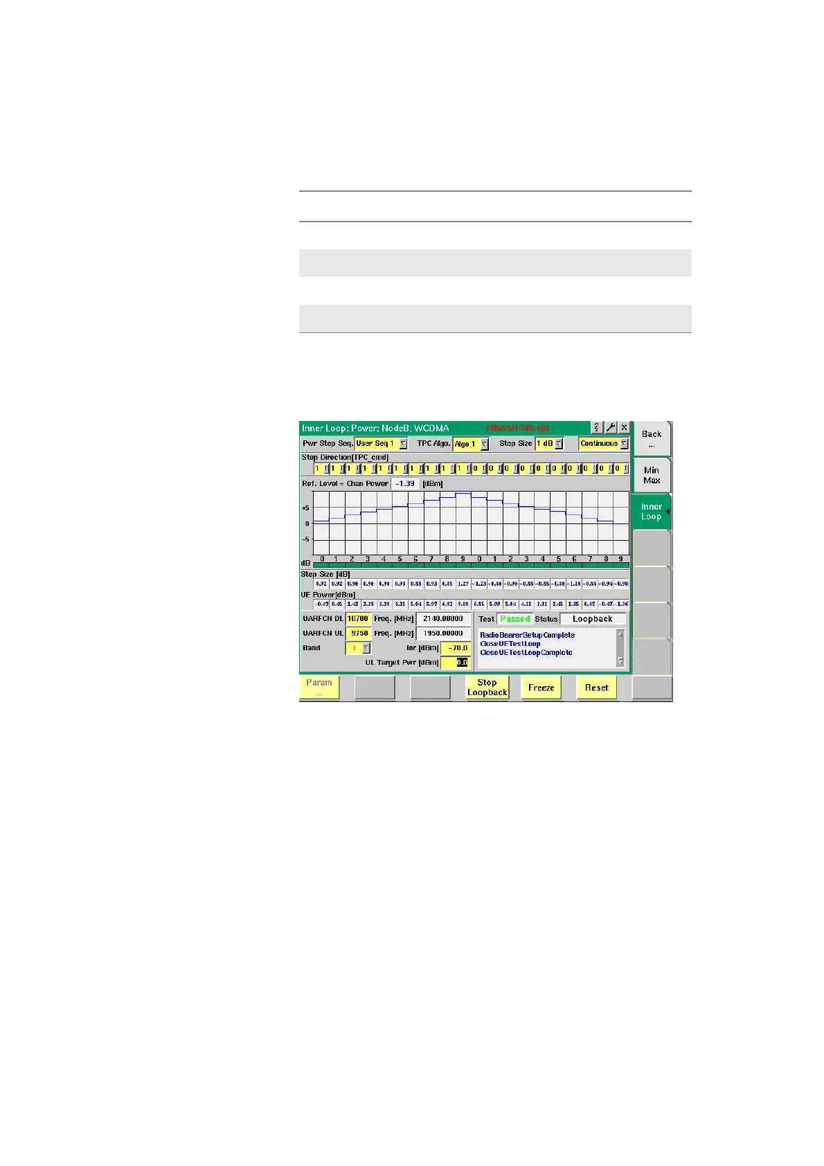 20 steps of the inner loop power control can be displayed, in remote mode it is