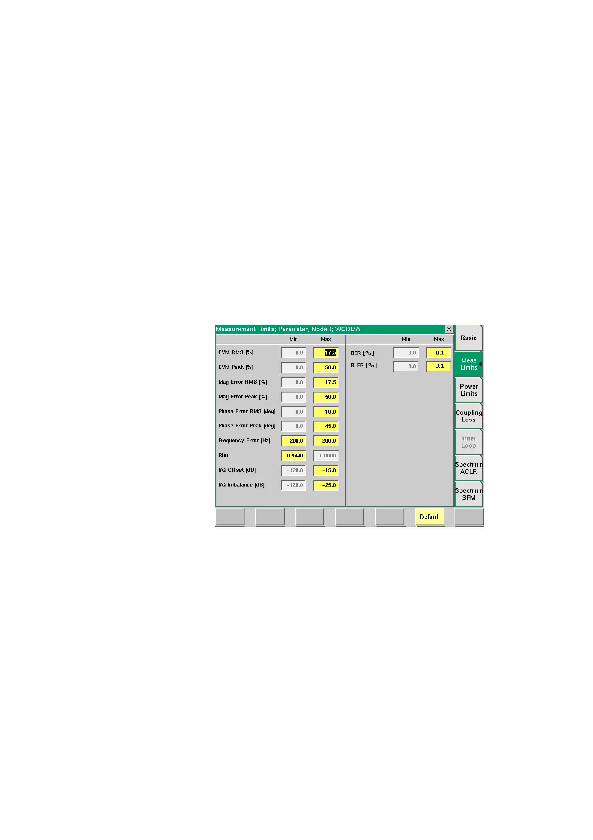 WCDMA specifications. However, you can change the limit values in order to