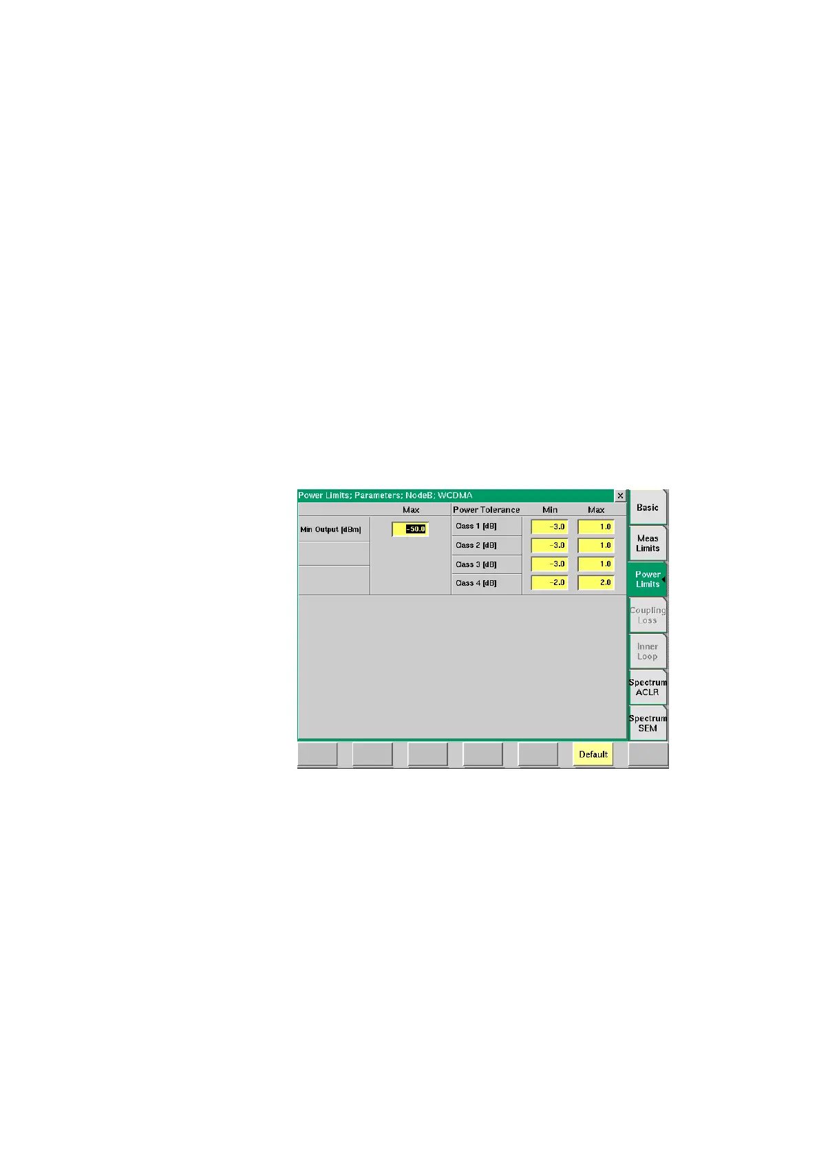 Power Limits In this menu you can define the limits for power measurements, e.g. minimum