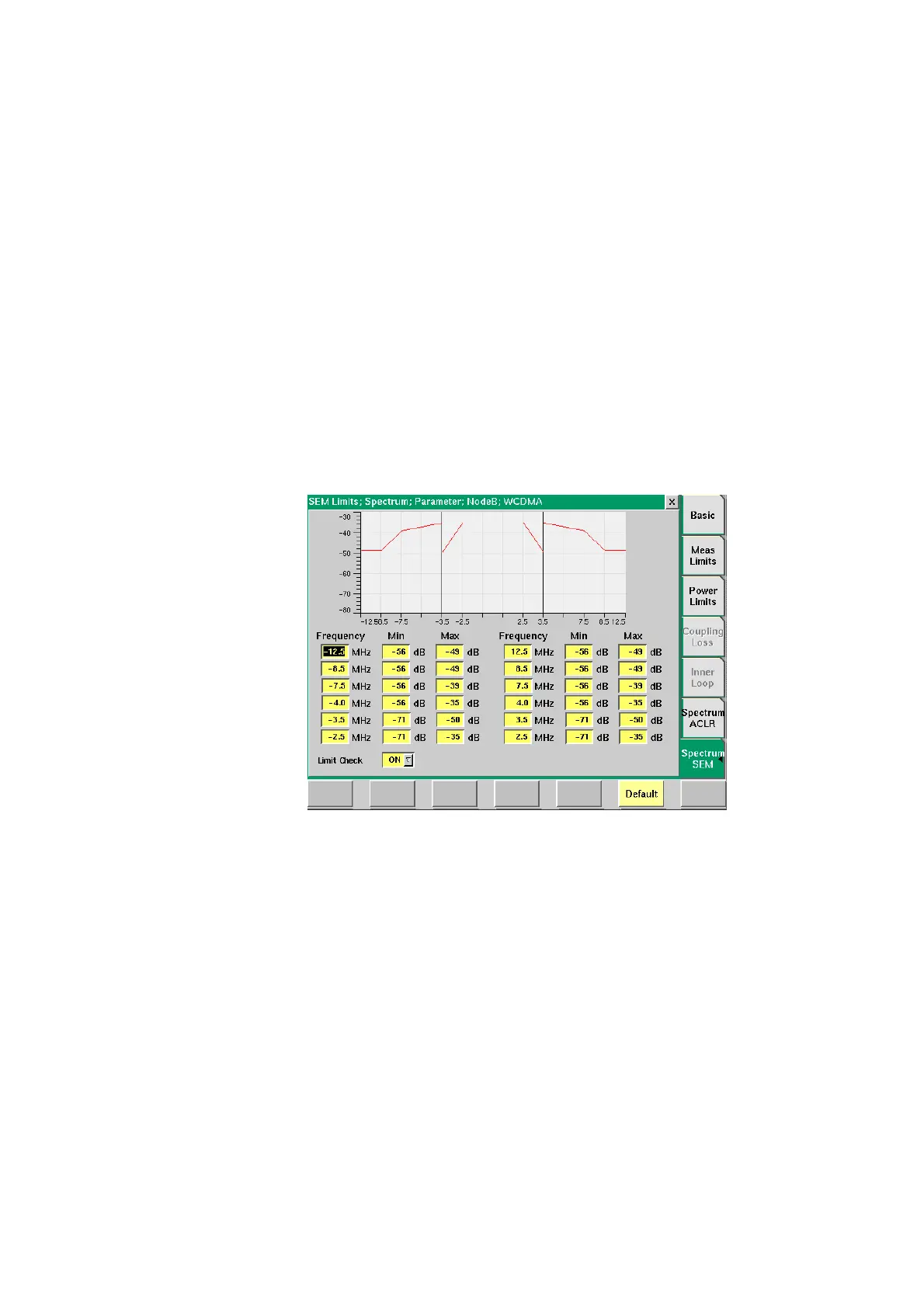 Spectrum SEM In this parameter menu you can set the limit values for Spectrum Emission Mask