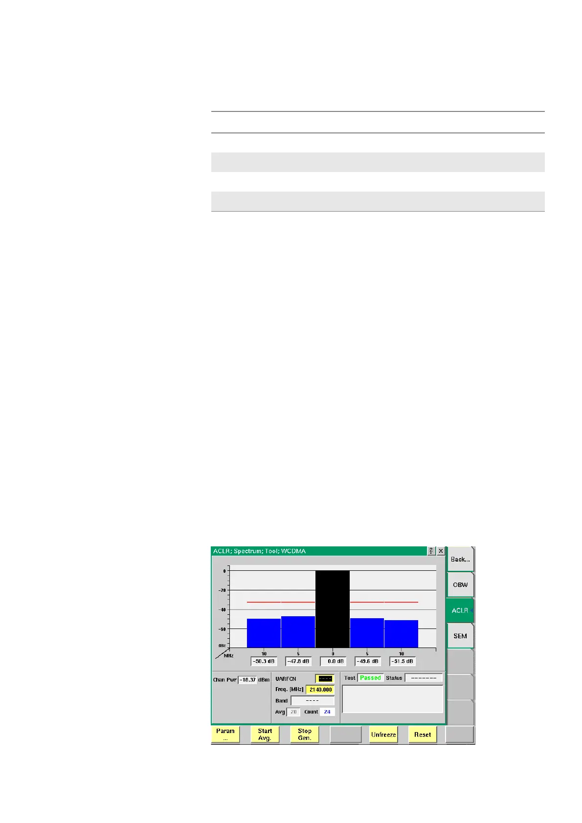ACLR limits can be set or modified in the Spectrum ACLR Parameters menu. For