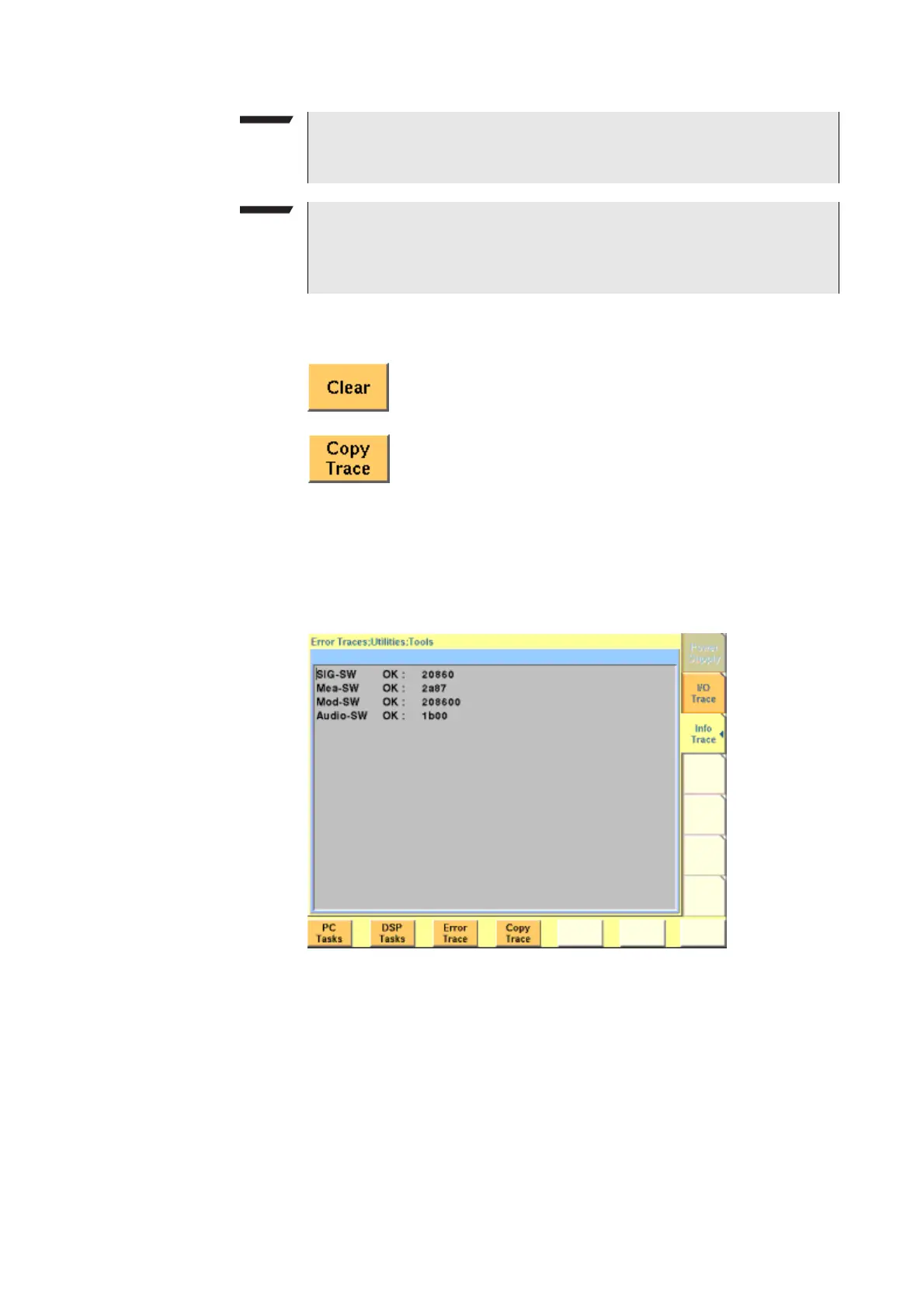 Info trace Push the [Info Trace] marker tab to gain access to this menu.