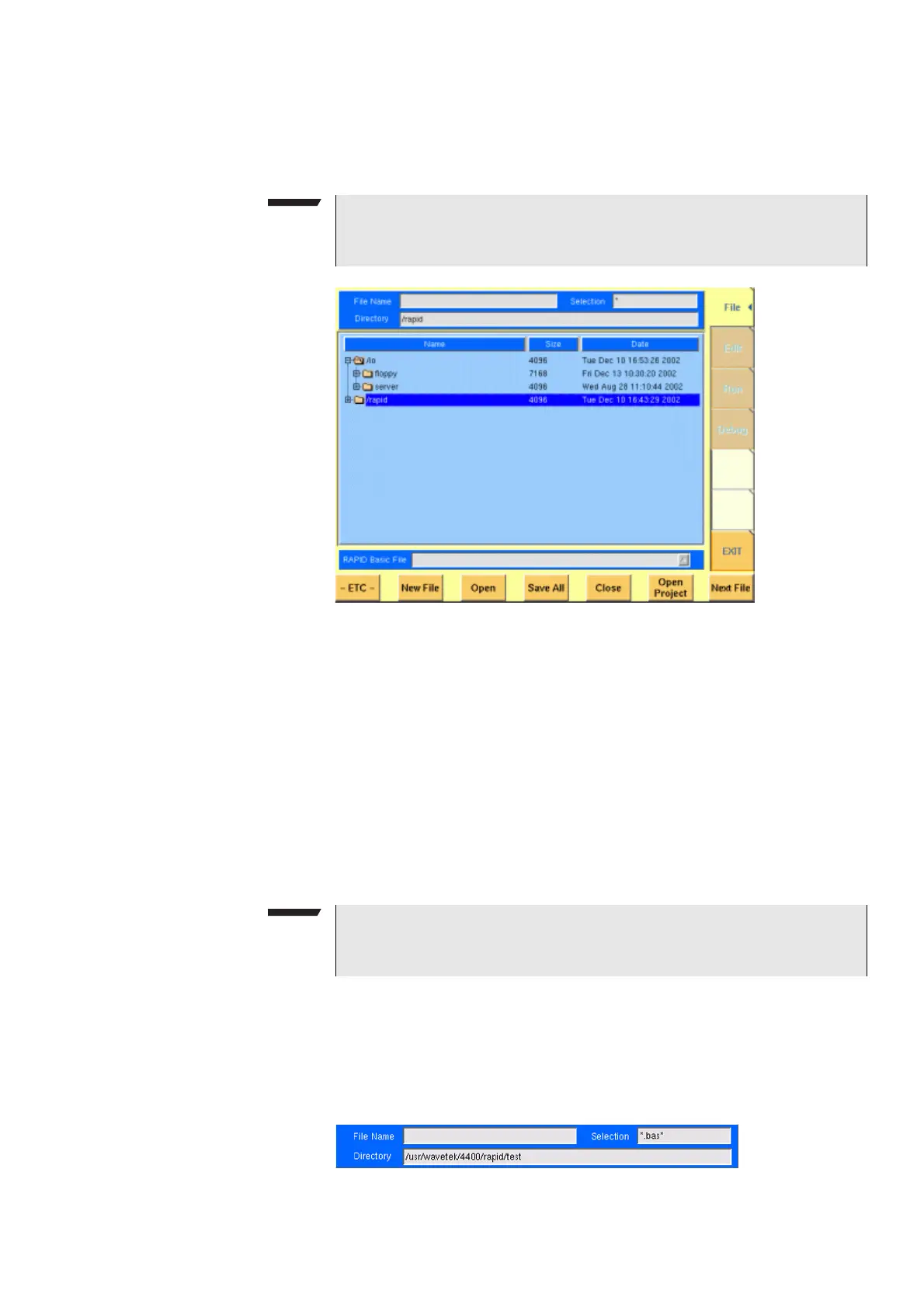 The softkeys are used to call specific file functions (as e.g. creating a new file,