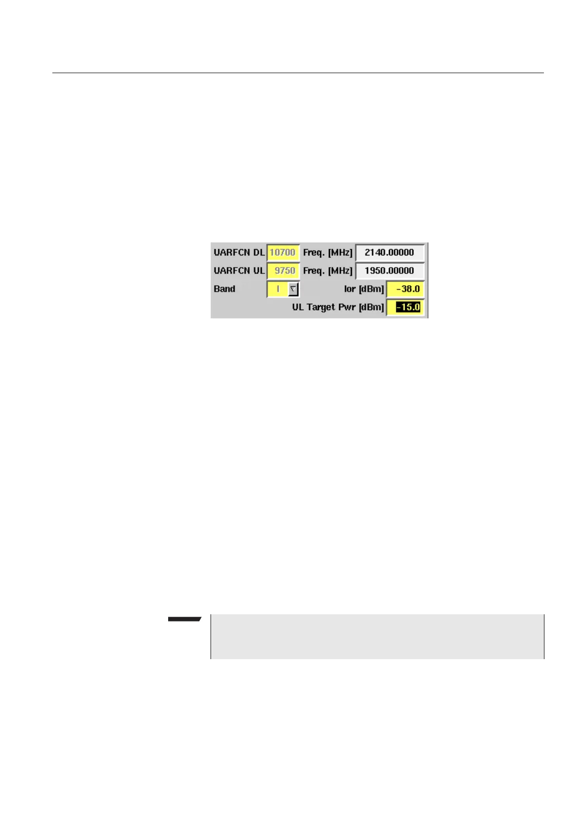 UARFCN DL/UL entry field. After entering the UARFCN the associated operating
