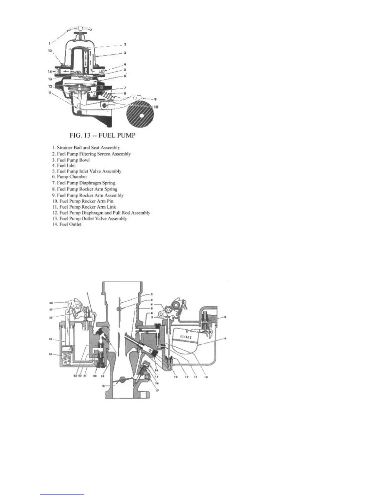 The fuel pump is of the diaphragm type attached to the left side of the crankcase and operated from an eccentric on the