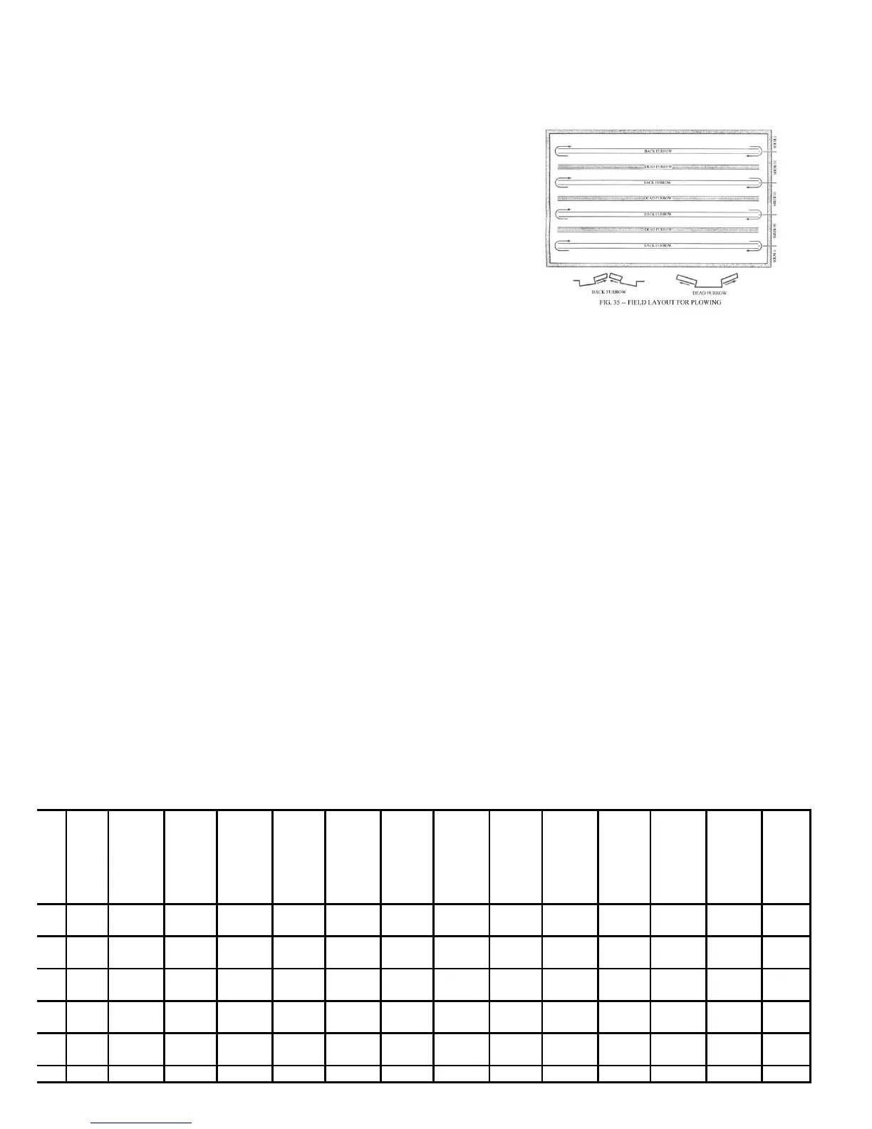 opposite side of the next back furrow. Plowing around the two back furrows until the two plowed sections are wide enough to