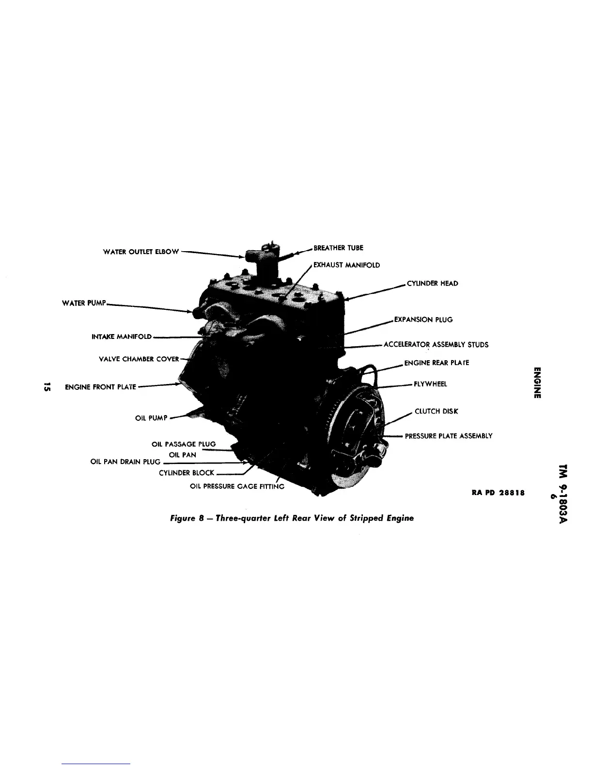 Willys Ford GPW - Three-Quarter Left Rear View of Stripped Engine