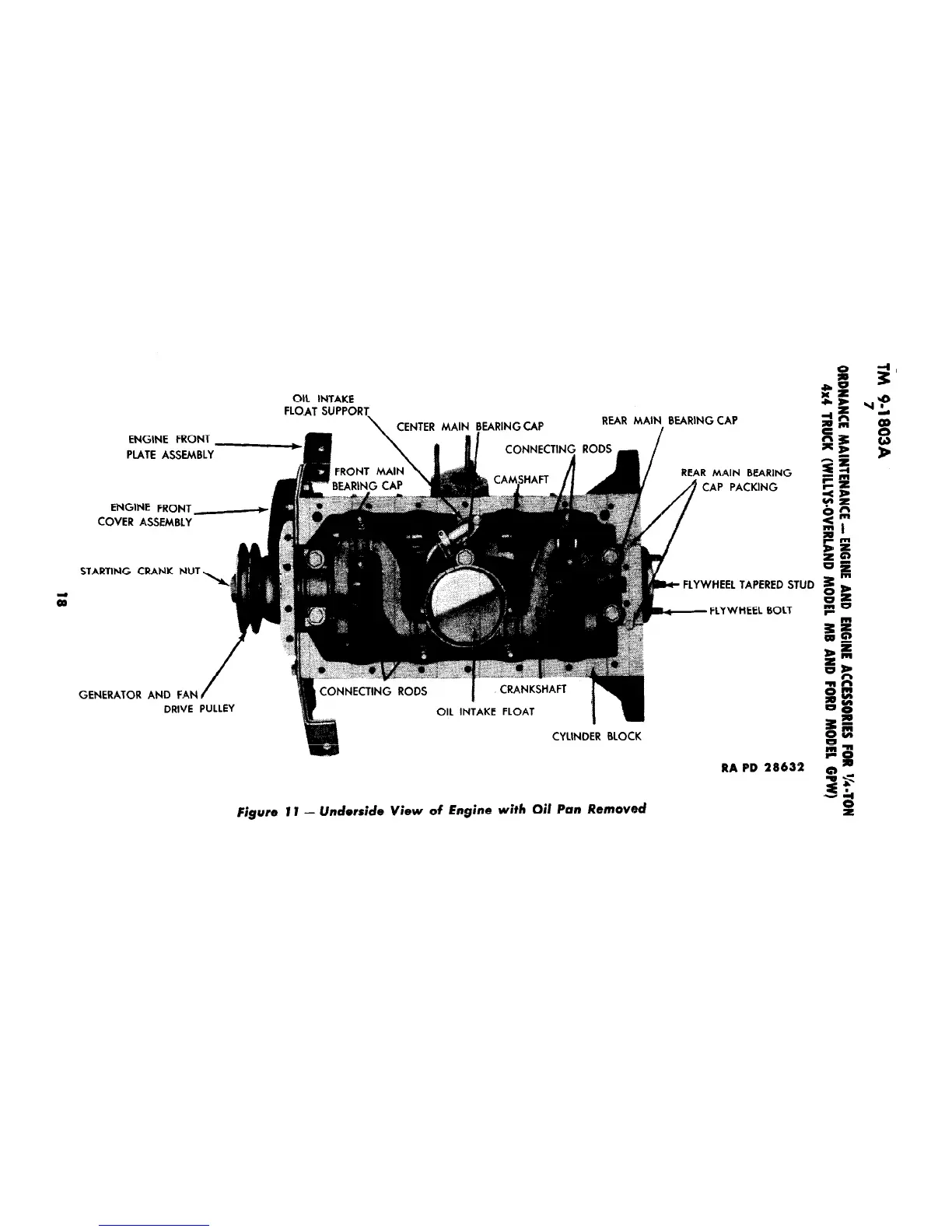 Willys Ford GPW - Underside View of Engine with Oil Pan Removed