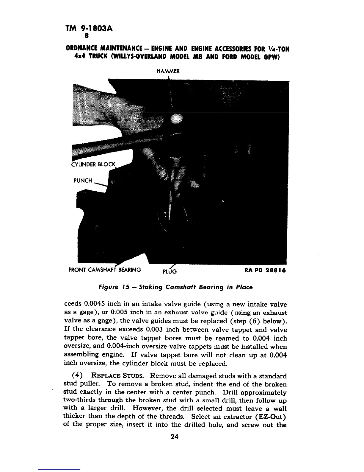 tappet bore, the valve tappet bores must be reamed to 0.004 inch