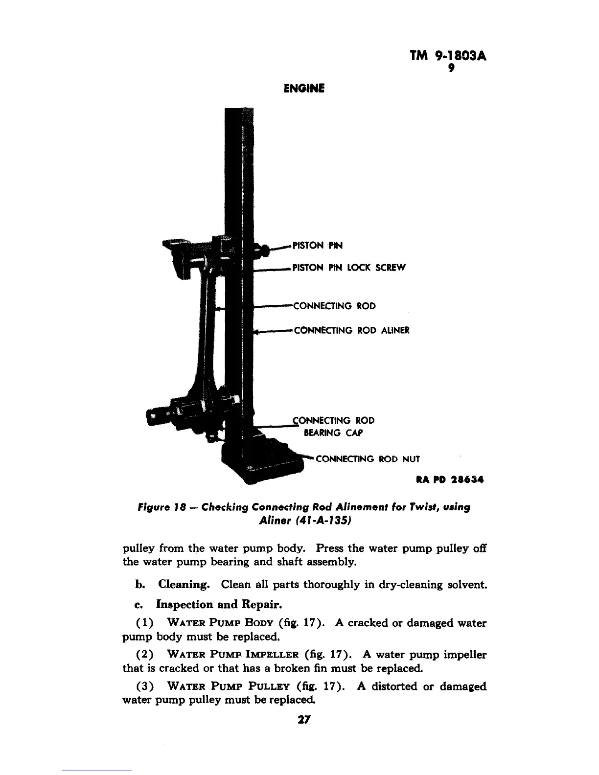 (1) WATER PUMP BODY (fig. 17). A cracked or damaged water