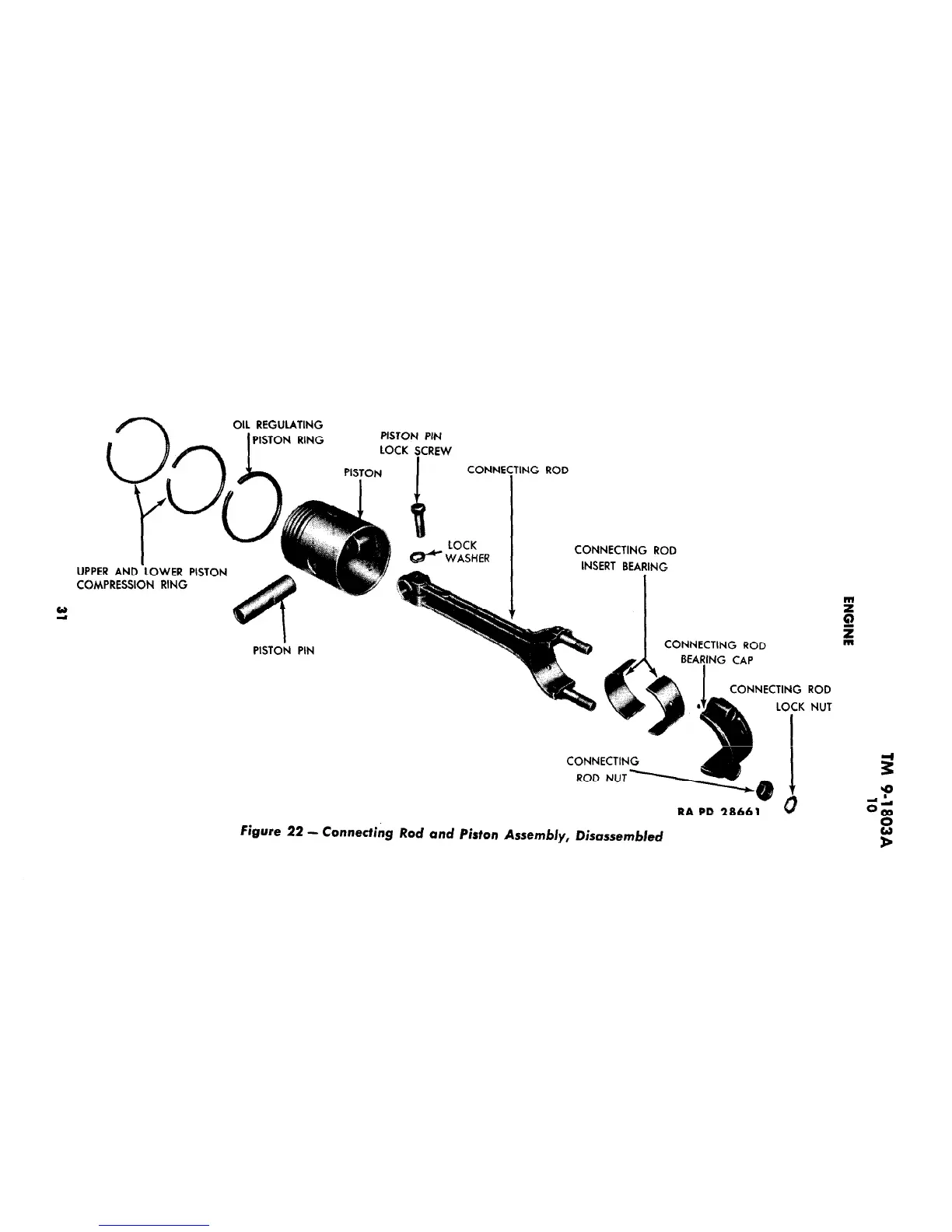 Willys Ford GPW - Connecting Rod and Piston Assembly, Disassembled View