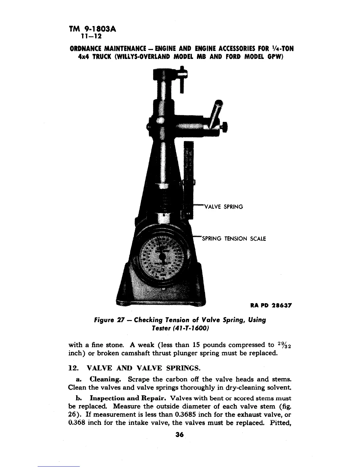 12. VALVE AND VALVE SPRINGS.