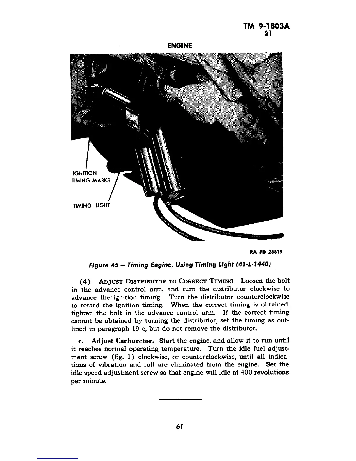 lined in paragraph 19 e, but do not remove the distributor.