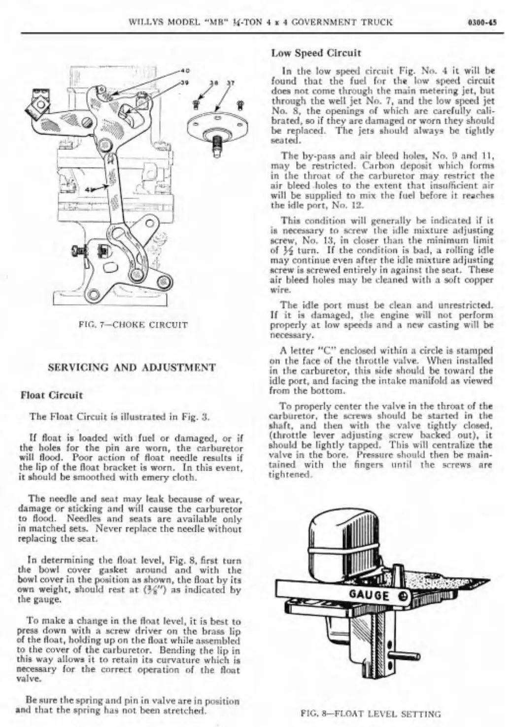found that the fuel for the low speed circuit