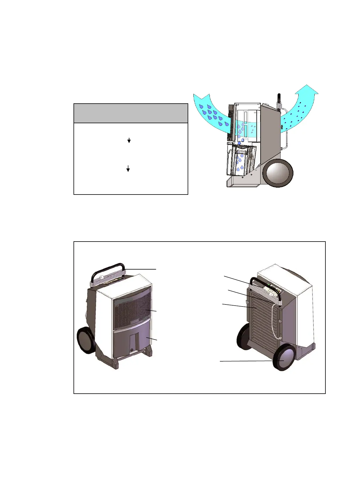 Water Tank: Water is collected in the water tank. Alternatively, you can also setup the dehumidifier for