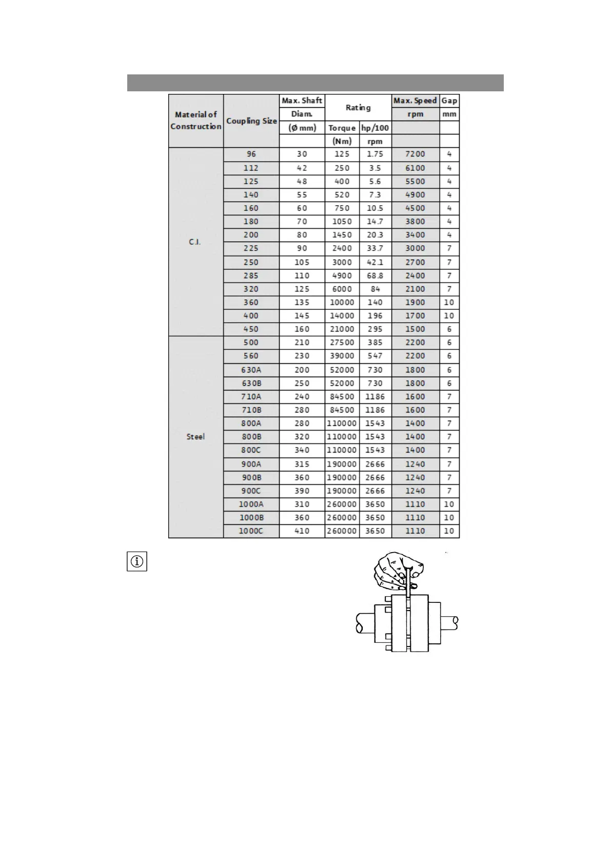 COUPLING SELECTION CHART FOR STD PIN-BUSH COUPLING