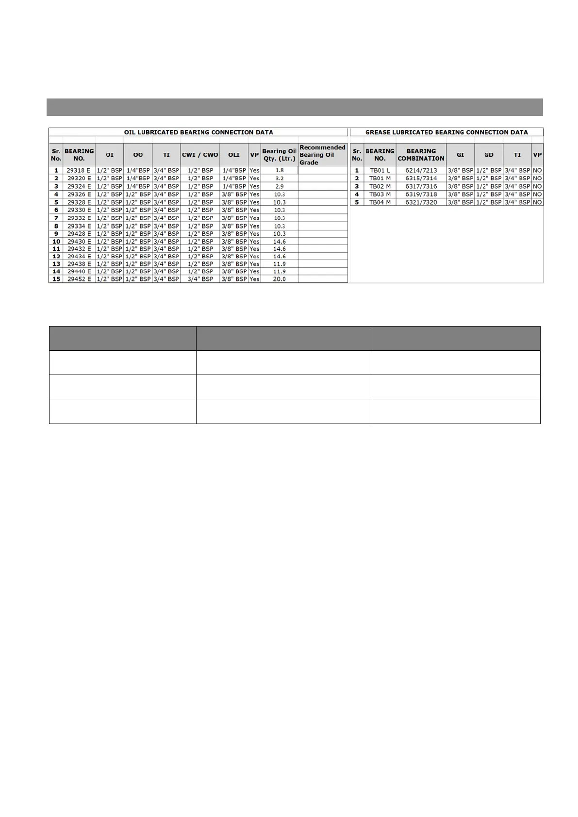 Oil and GREASE LUBRICATED BEARING CONNECTION DATA