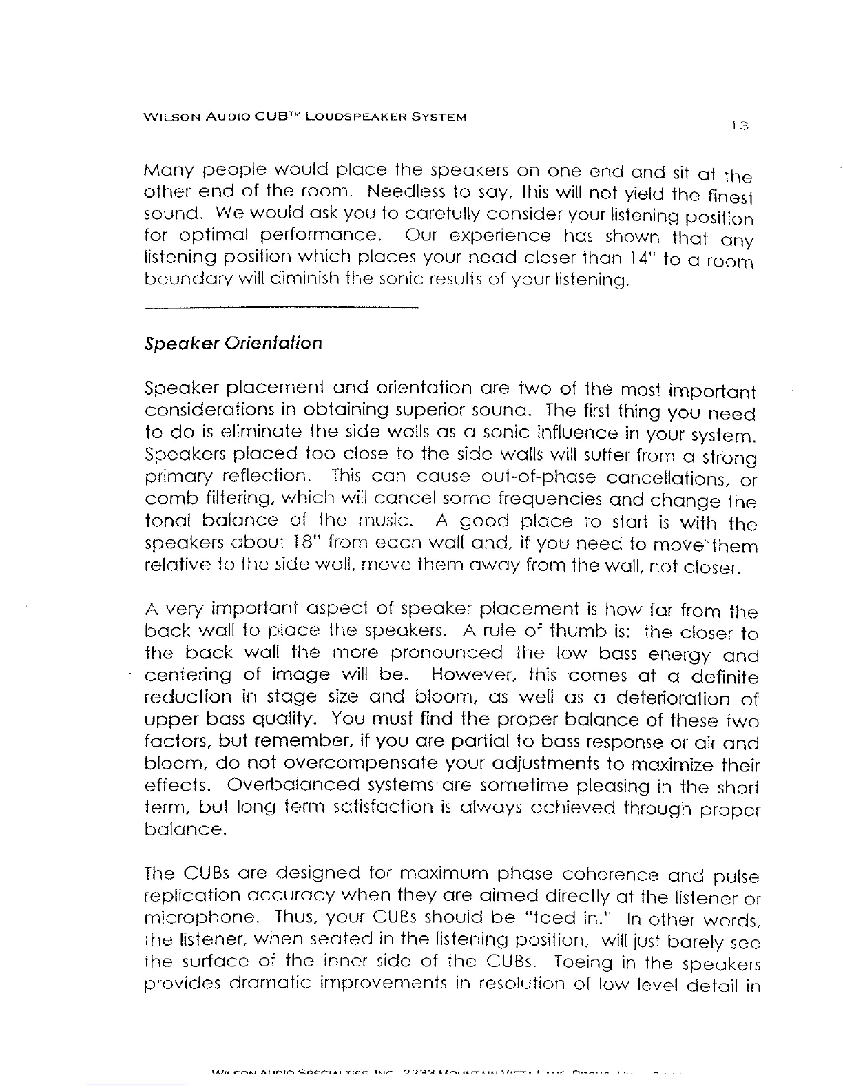 WILSON AUDIO CUB - Speaker Orientation