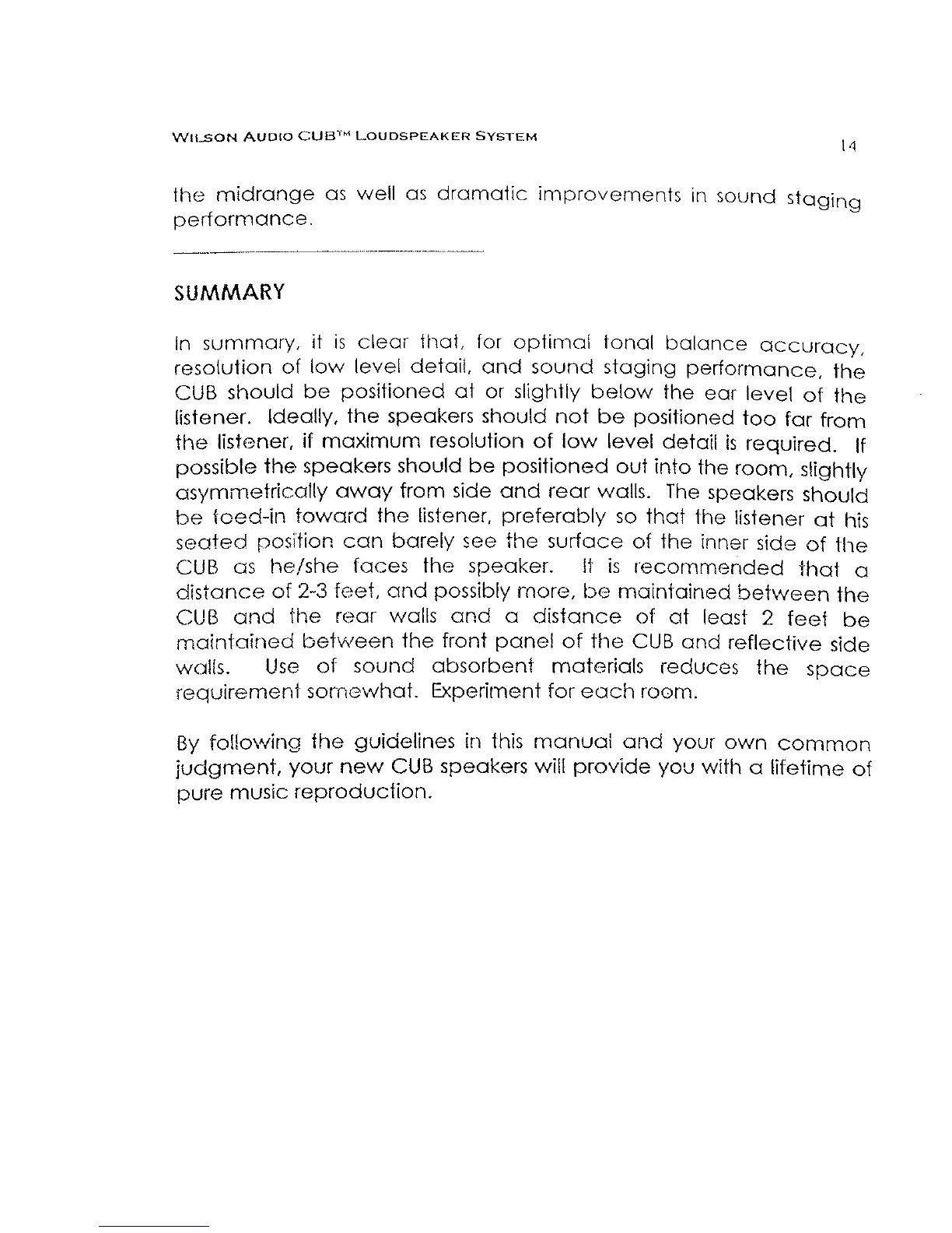 WILSON AUDIO CUB - Summary