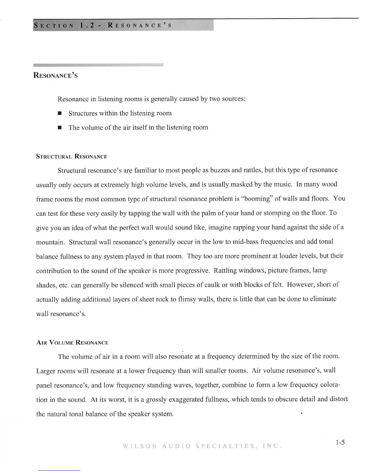 WILSON AUDIO MAXX - Room Resonances