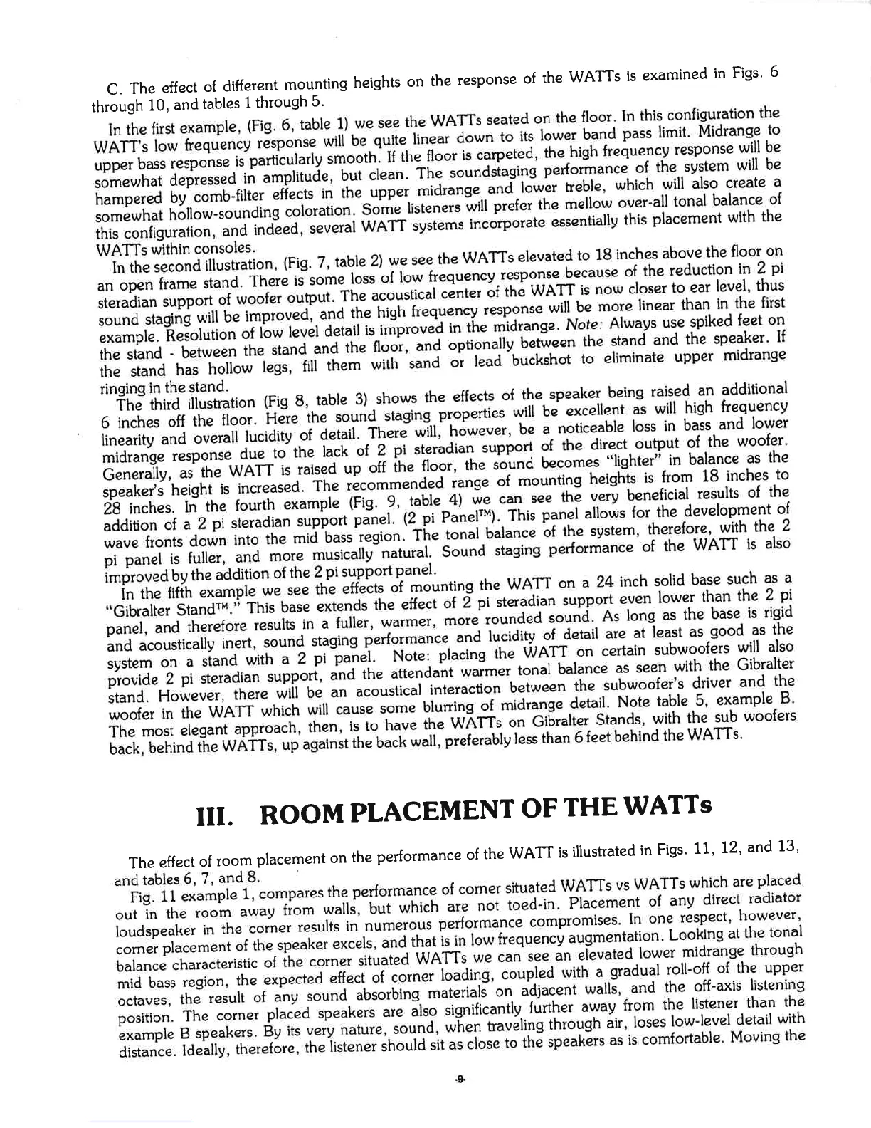 WILSON AUDIO WATT - II. Mounting Heights of Your Watts; Floor Placement (Fig 6, Table 1)