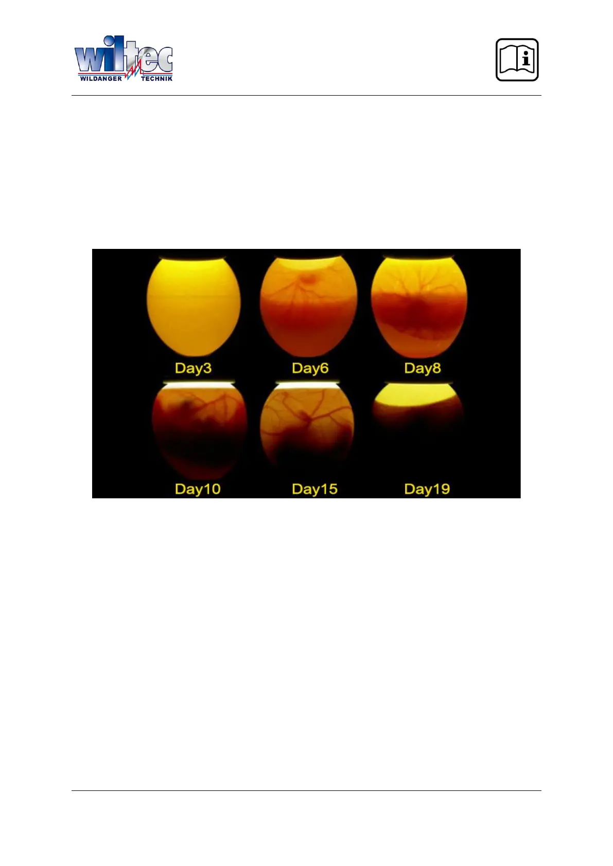The second testing of the eggs (after 11–12 days): Mainly for checking the development of the em-