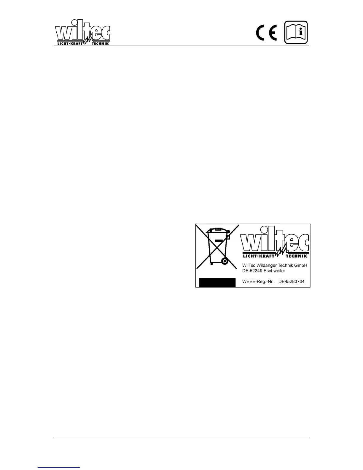 All Wiltec electric devices that fall under the WEEE regulations are labelled with the